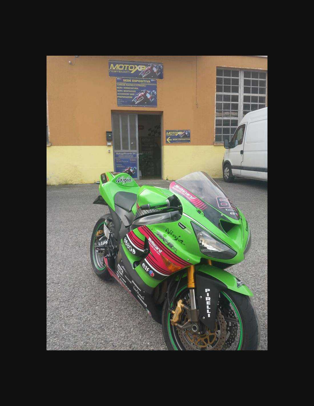 Elite: utilizamos los colores originales de la moto (Kawasaki verde); los adhesivos están impresos con varios tonos gracias a nuestro plotter de corte y de impresión de 8 colores con tintas ECO-SOLMAX2 con una alta calidad y resistencia a la luz solar hasta 7 años garantizados por la empresa APA Italia que nos da los materiales necesarios para el corte y la impresión. Los adhesivos están cubiertos por tres capas de transparente y eso los hace brillar durante 7 años. Además todo el carenado está pintado en el interior.