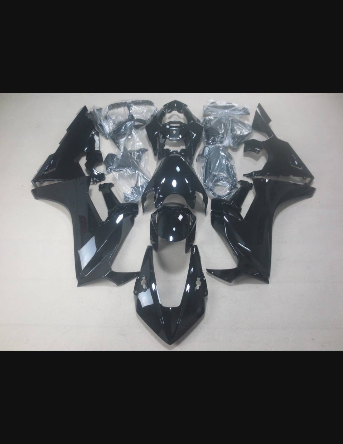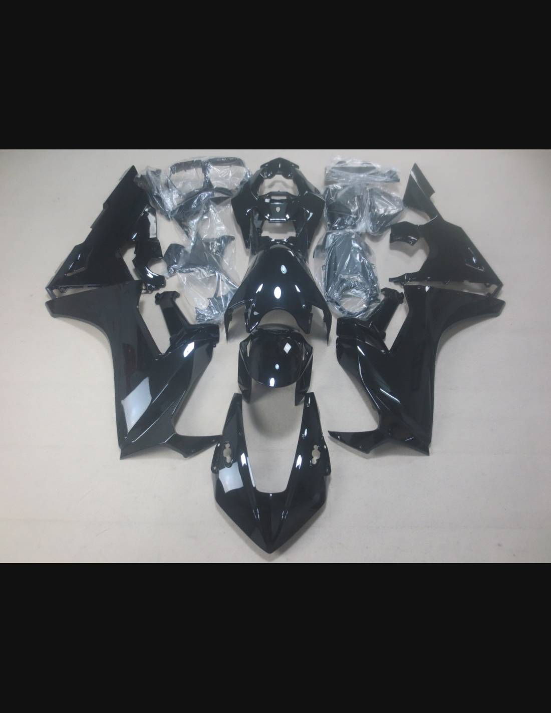 El kit de carenados incluye: carenado frontal, laterales de derecha y izquierda, quilla, colin, guardabarros delantero y todos los eventuales plasticos interiores negros.