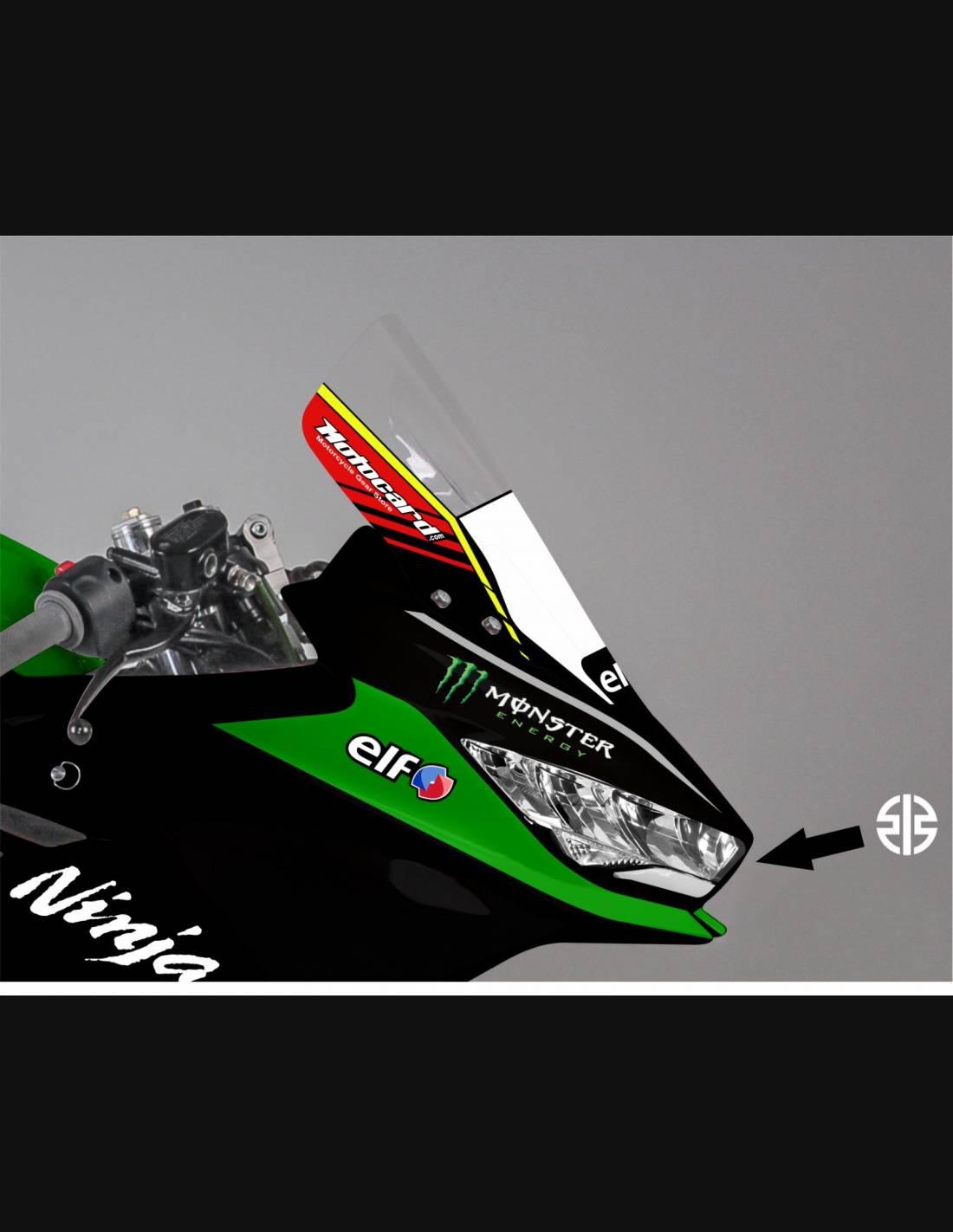Elite: Usamos colores compatibles con el deposito original de la motocicleta (por ejemplo, el verde de Kawasaki). Las pegatinas se imprimen con impresoras de 8 colores que les dan un brillo y matices impecables. Todo el gráfico se encuentra bajo tres capas de transparente para mantener los colores del carenado brillantes con el tiempo. También pintamos todo el kit de carenado por dentro.