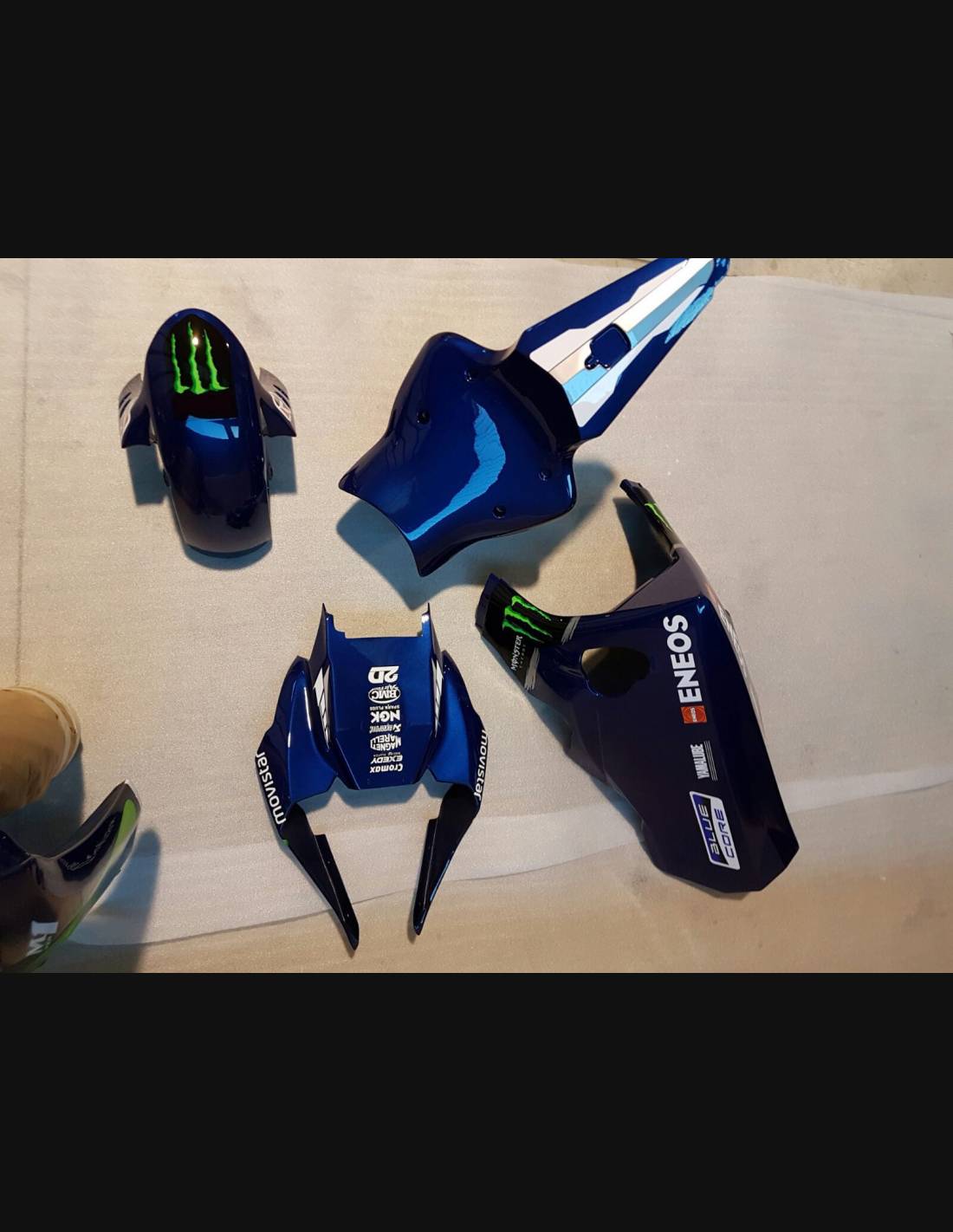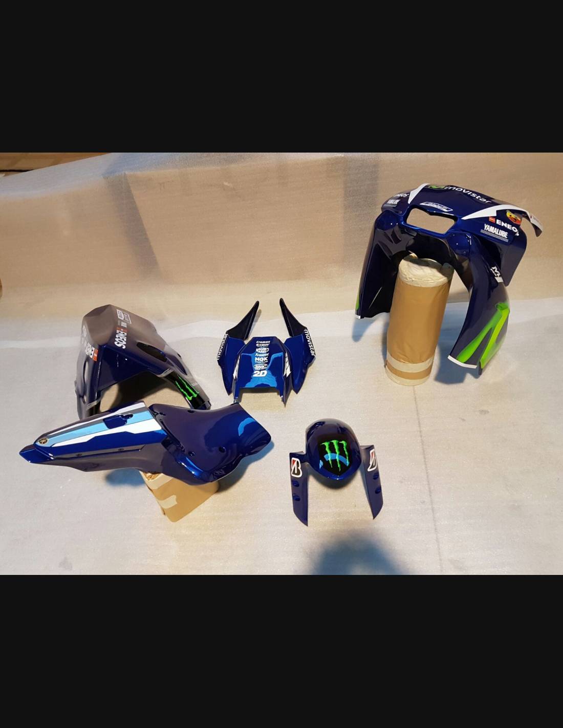 Elite: utilizamos pinturas de alta calidad con tonalidades similares a las originales. Las pegatinas se imprimen con impresoras de 8 colores que les dan un brillo y matices impecables. Todo el gráfico se encuentra bajo tres capas de transparente para mantener los colores del carenado brillantes con el tiempo. También pintamos todo el kit de carenado por dentro.