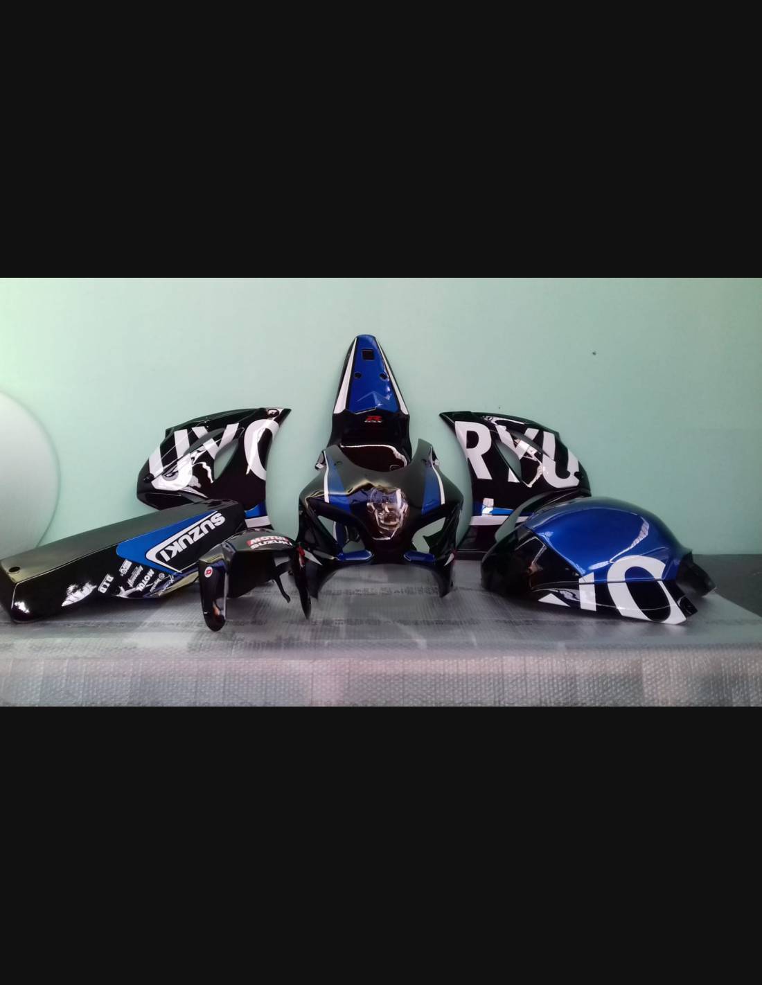 Elite: utilizamos pinturas de alta calidad con tonalidades similares a las originales. Las pegatinas se imprimen con impresoras de 8 colores que les dan un brillo y matices impecables. Todo el gráfico se encuentra bajo tres capas de transparente para mantener los colores del carenado brillantes con el tiempo. También pintamos todo el kit de carenado por dentro.
