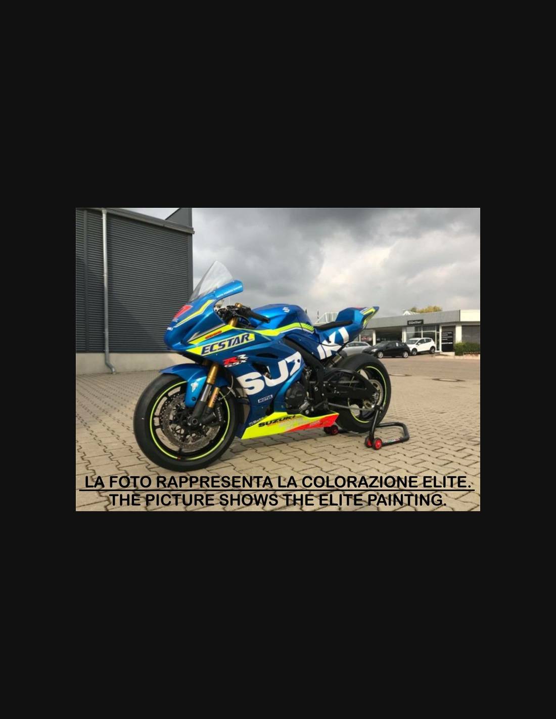 Elite: utilizamos pinturas de alta calidad con tonalidades similares a las originales. Las pegatinas se imprimen con impresoras de 8 colores que les dan un brillo y matices impecables. Todo el gráfico se encuentra bajo tres capas de transparente para mantener los colores del carenado brillantes con el tiempo. También pintamos todo el kit de carenado por dentro.