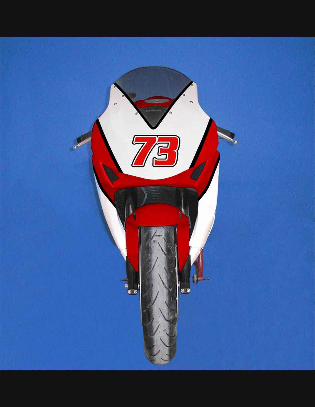Elite: utilizamos pinturas de alta calidad con tonalidades similares a las originales. Las pegatinas se imprimen con impresoras de 8 colores que les dan un brillo y matices impecables. Todo el gráfico se encuentra bajo tres capas de transparente para mantener los colores del carenado brillantes con el tiempo. También pintamos todo el kit de carenado por dentro.