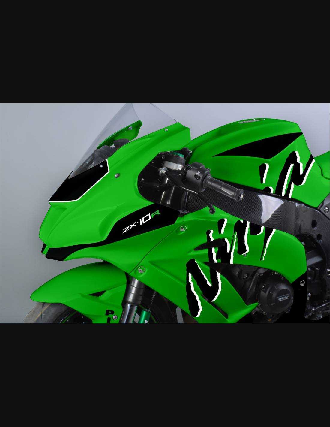 Elite: Usamos colores compatibles con el deposito original de la motocicleta (por ejemplo, el verde de Kawasaki). Las pegatinas se imprimen con impresoras de 8 colores que les dan un brillo y matices impecables. Todo el gráfico se encuentra bajo tres capas de transparente para mantener los colores del carenado brillantes con el tiempo. También pintamos todo el kit de carenado por dentro.
