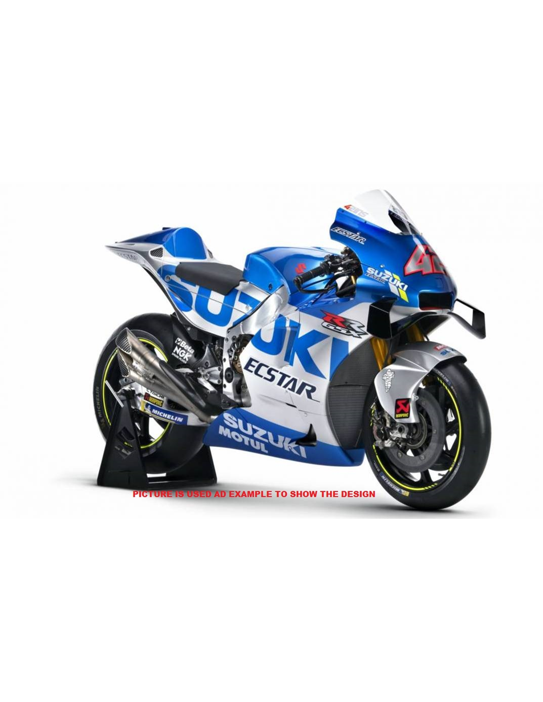 Elite: utilizamos pinturas de alta calidad con tonalidades similares a las originales. Las pegatinas se imprimen con impresoras de 8 colores que les dan un brillo y matices impecables. Todo el gráfico se encuentra bajo tres capas de transparente para mantener los colores del carenado brillantes con el tiempo. También pintamos todo el kit de carenado por dentro.