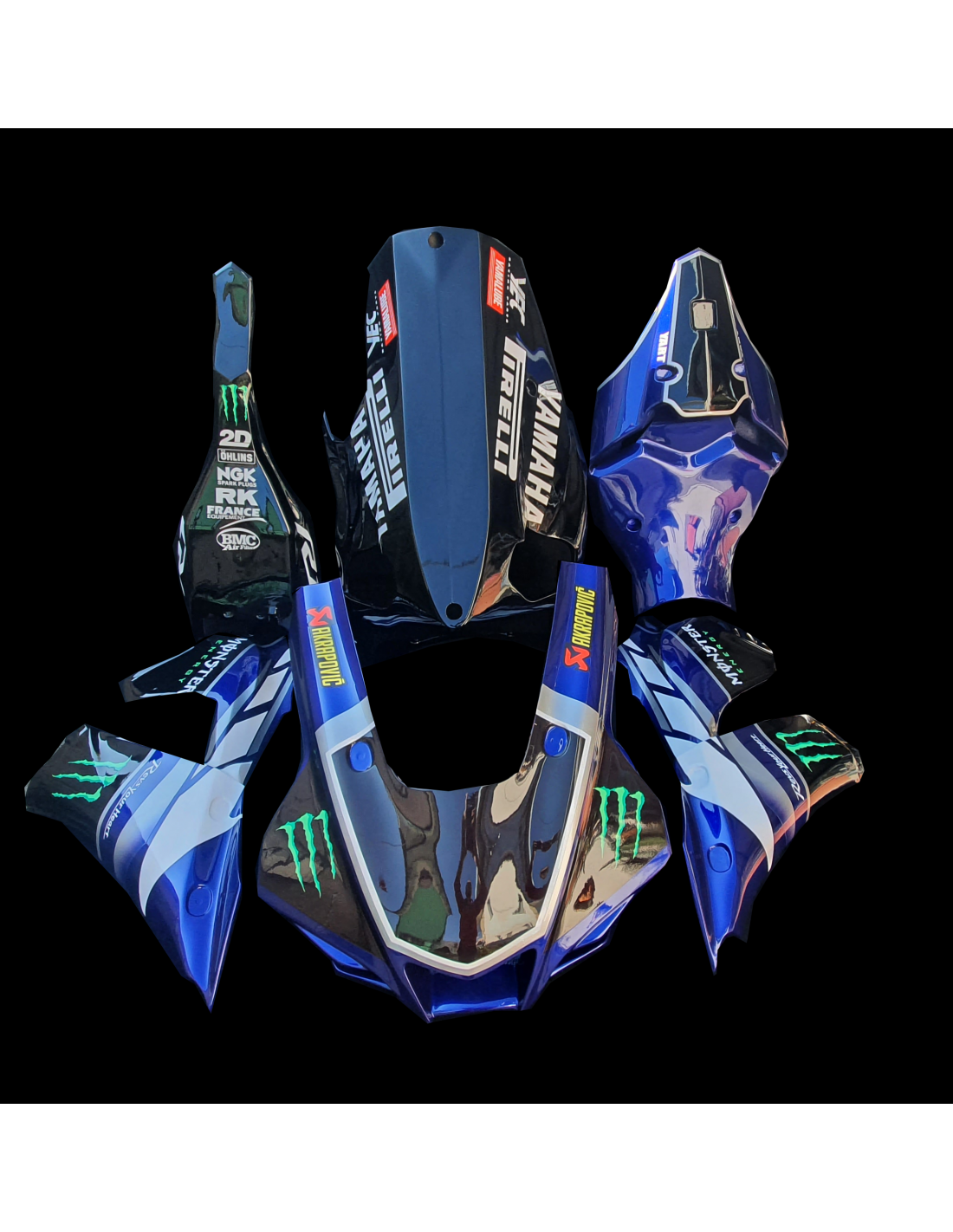 El kit de carenados incluye: carenado frontal, laterales de derecha y izquierda, quilla cerrada homologada para la pista, colin (el cubre deposito, y guardabarros delantero no se incluye en el precio).