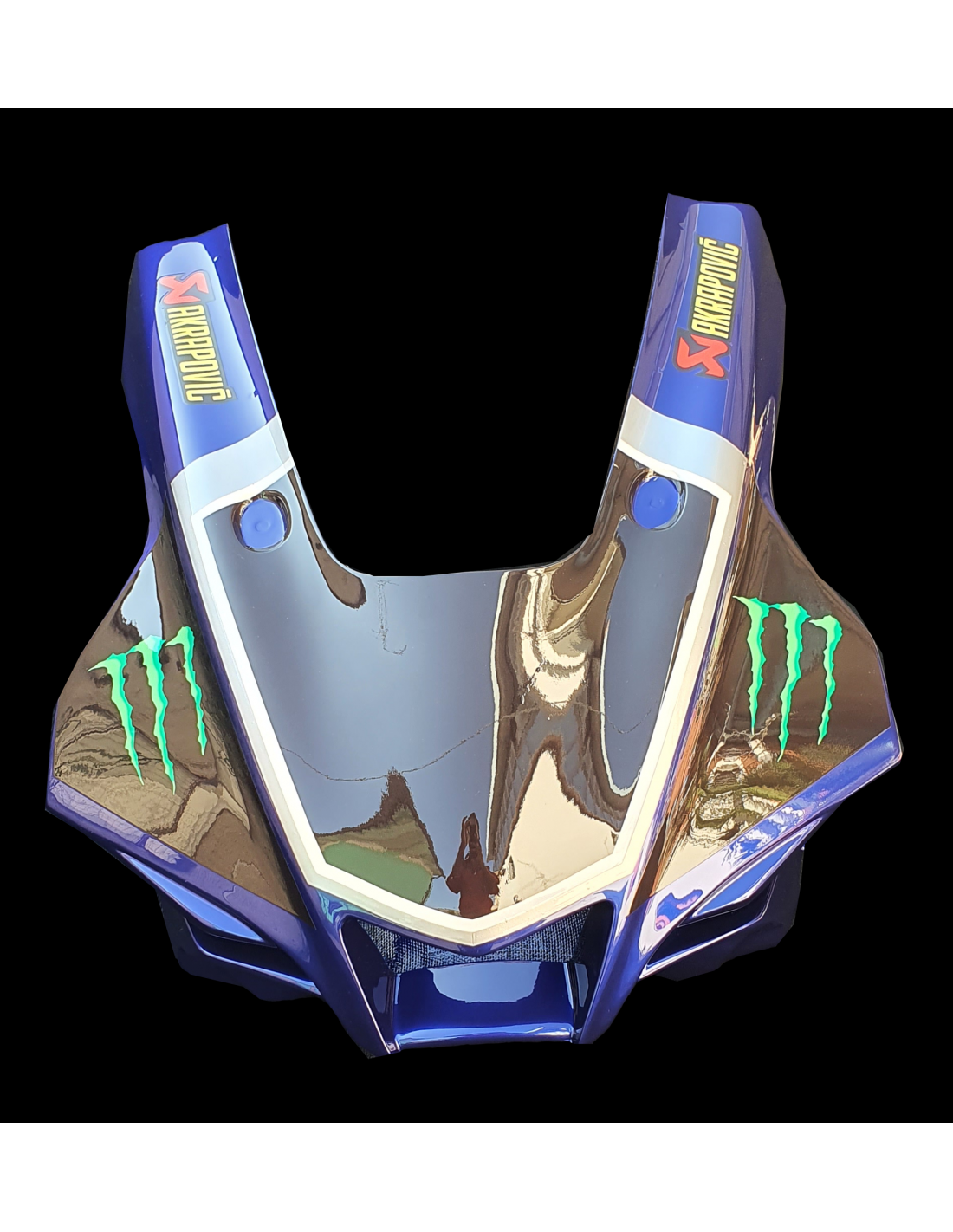 Elite: utilizamos pinturas de alta calidad con tonalidades similares a las originales. Las pegatinas se imprimen con impresoras de 8 colores que les dan un brillo y matices impecables. Todo el gráfico se encuentra bajo tres capas de transparente para mantener los colores del carenado brillantes con el tiempo. También pintamos todo el kit de carenado por dentro.
