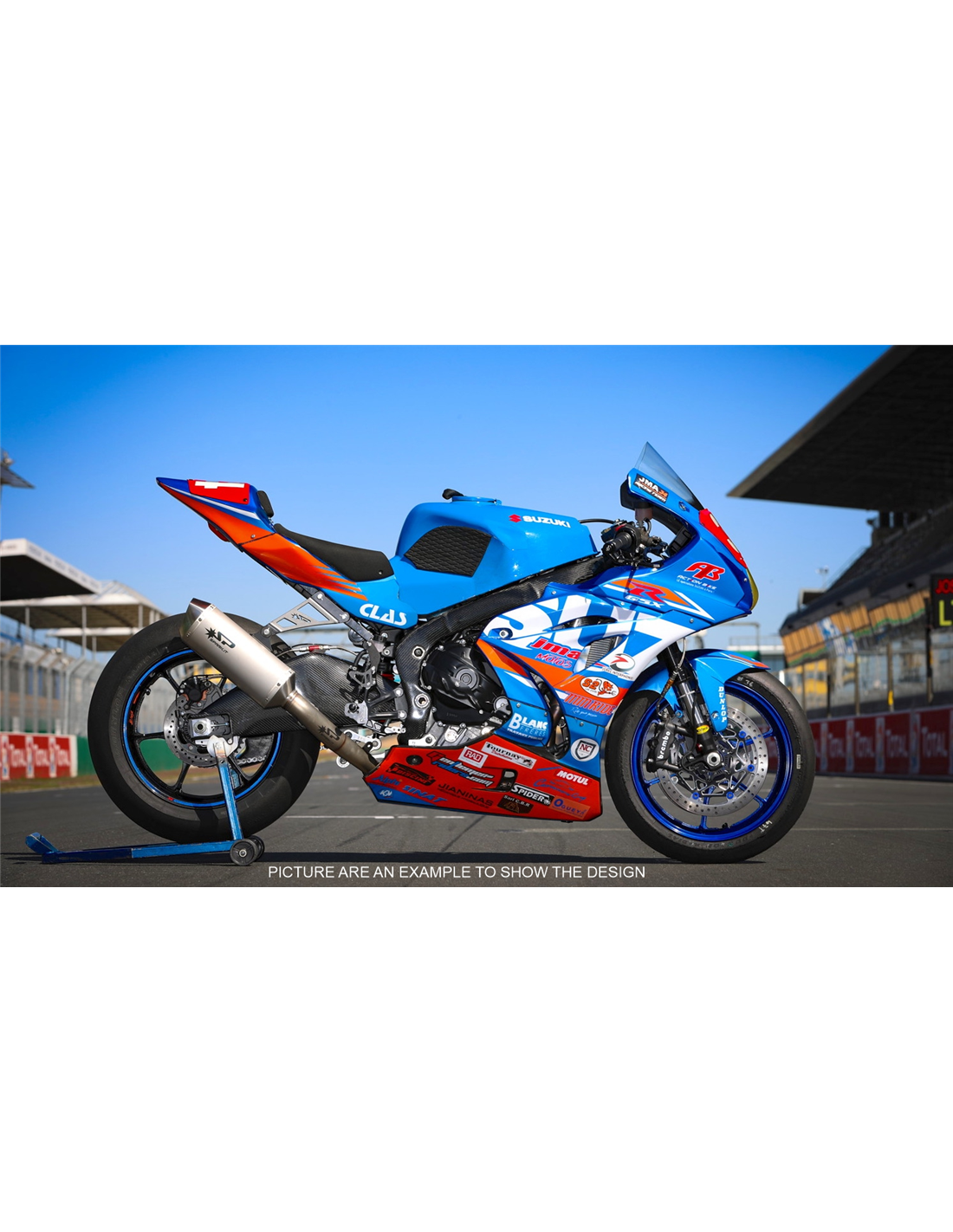 Elite: utilizamos pinturas de alta calidad con tonalidades similares a las originales. Las pegatinas se imprimen con impresoras de 8 colores que les dan un brillo y matices impecables. Todo el gráfico se encuentra bajo tres capas de transparente para mantener los colores del carenado brillantes con el tiempo. También pintamos todo el kit de carenado por dentro.