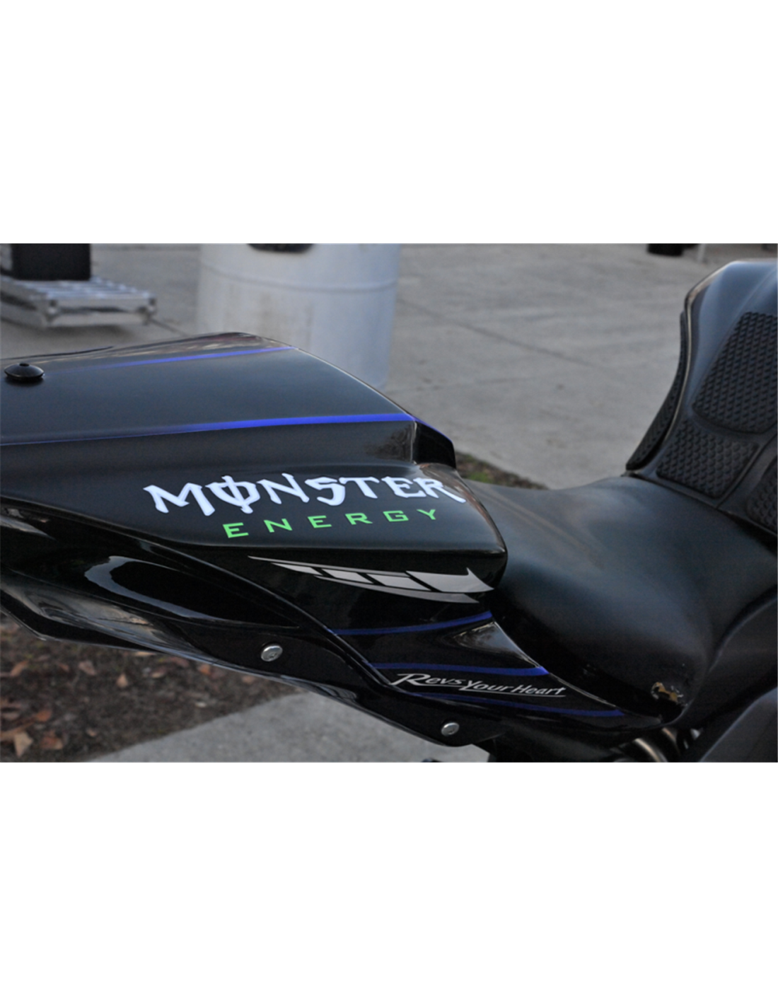 Elite: utilizamos pinturas de alta calidad con tonalidades similares a las originales. Las pegatinas se imprimen con impresoras de 8 colores que les dan un brillo y matices impecables. Todo el gráfico se encuentra bajo tres capas de transparente para mantener los colores del carenado brillantes con el tiempo. También pintamos todo el kit de carenado por dentro.