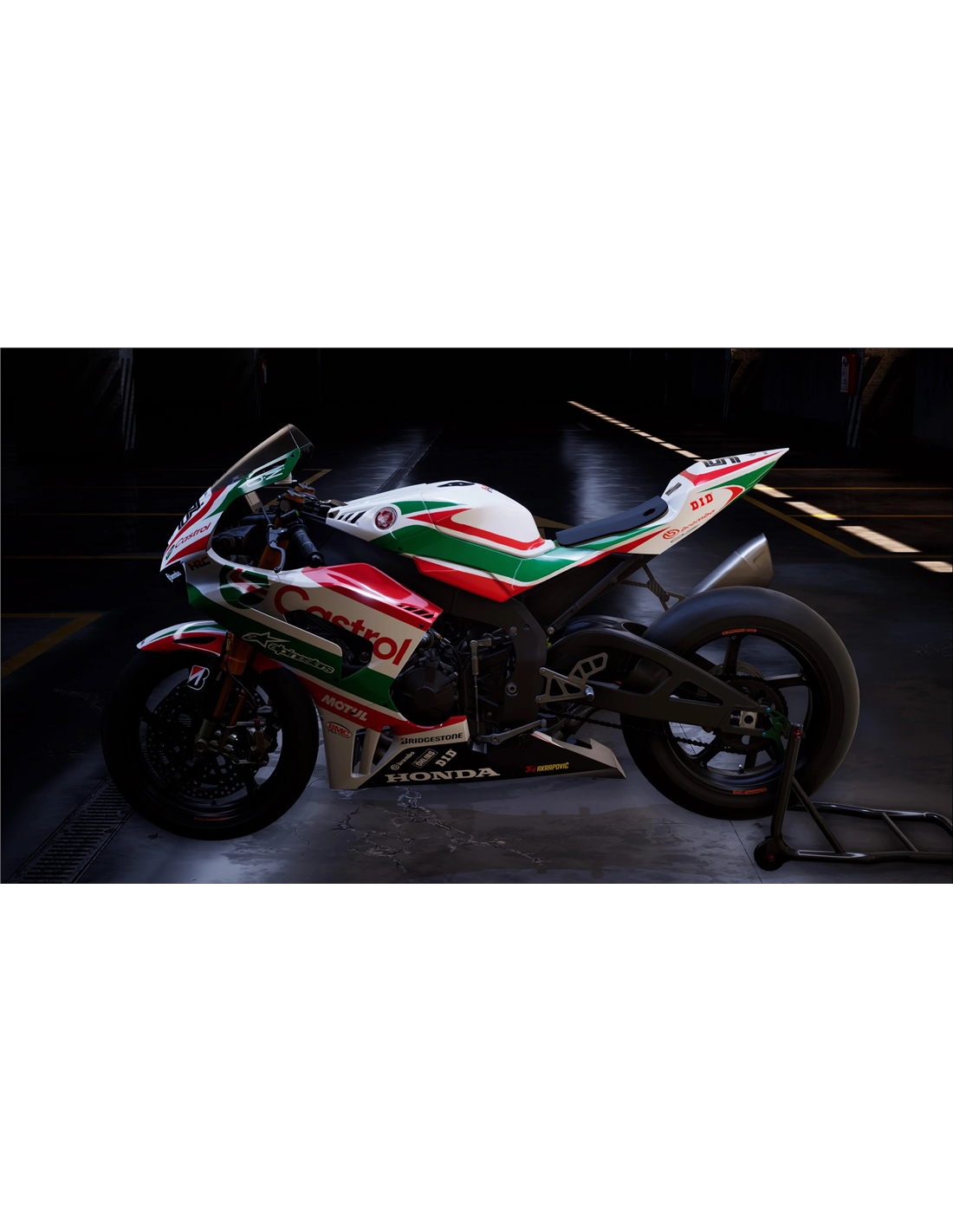 Elite: utilizamos pinturas de alta calidad con tonalidades similares a las originales. Las pegatinas se imprimen con impresoras de 8 colores que les dan un brillo y matices impecables. Todo el gráfico se encuentra bajo tres capas de transparente para mantener los colores del carenado brillantes con el tiempo. También pintamos todo el kit de carenado por dentro.