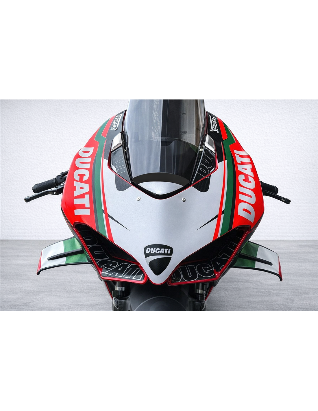 Elite: Usamos colores compatibles con el deposito original de la motocicleta (por ejemplo, el rojo de Ducati). Las pegatinas se imprimen con impresoras de 8 colores que les dan un brillo y matices impecables. Todo el gráfico se encuentra bajo tres capas de transparente para mantener los colores del carenado brillantes con el tiempo. También pintamos todo el kit de carenado por dentro.