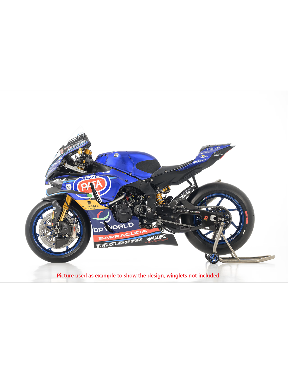 Elite: utilizamos pinturas de alta calidad con tonalidades similares a las originales. Las pegatinas se imprimen con impresoras de 8 colores que les dan un brillo y matices impecables. Todo el gráfico se encuentra bajo tres capas de transparente para mantener los colores del carenado brillantes con el tiempo. También pintamos todo el kit de carenado por dentro.