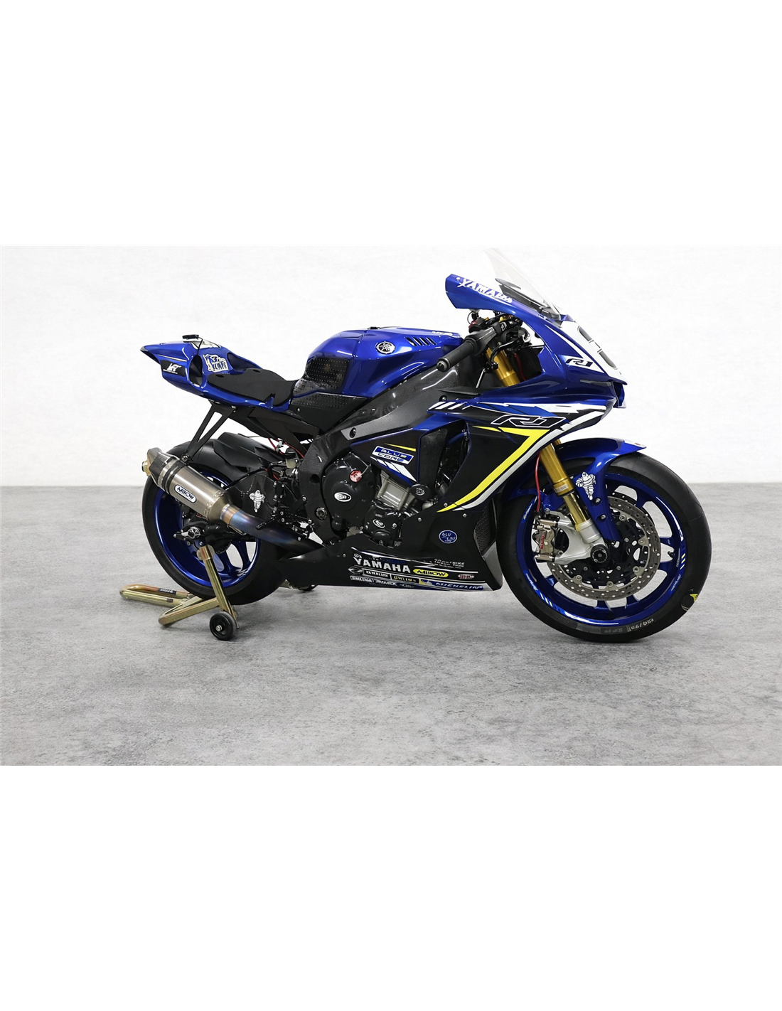 Elite: utilizamos pinturas de alta calidad con tonalidades similares a las originales. Las pegatinas se imprimen con impresoras de 8 colores que les dan un brillo y matices impecables. Todo el gráfico se encuentra bajo tres capas de transparente para mantener los colores del carenado brillantes con el tiempo. También pintamos todo el kit de carenado por dentro.