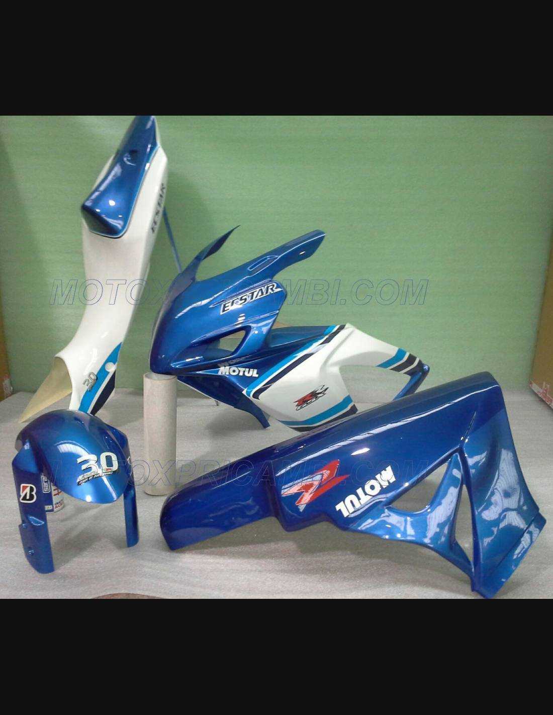 Elite: utilizamos pinturas de alta calidad con tonalidades similares a las originales. Las pegatinas se imprimen con impresoras de 8 colores que les dan un brillo y matices impecables. Todo el gráfico se encuentra bajo tres capas de transparente para mantener los colores del carenado brillantes con el tiempo. También pintamos todo el kit de carenado por dentro.