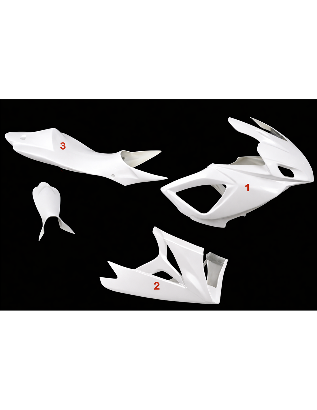 El kit de carenados incluye: carenado frontal, laterales de derecha y izquierda, quilla cerrada homologada para la pista, colin (el cubre deposito no se incluye en el precio).