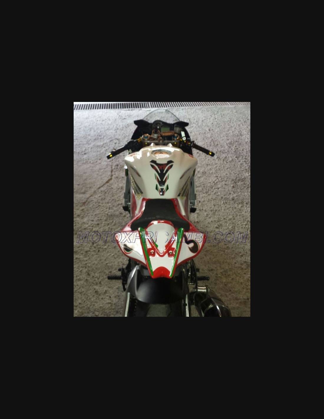 Elite: utilizamos pinturas de alta calidad con tonalidades similares a las originales. Las pegatinas se imprimen con impresoras de 8 colores que les dan un brillo y matices impecables. Todo el gráfico se encuentra bajo tres capas de transparente para mantener los colores del carenado brillantes con el tiempo. También pintamos todo el kit de carenado por dentro.
