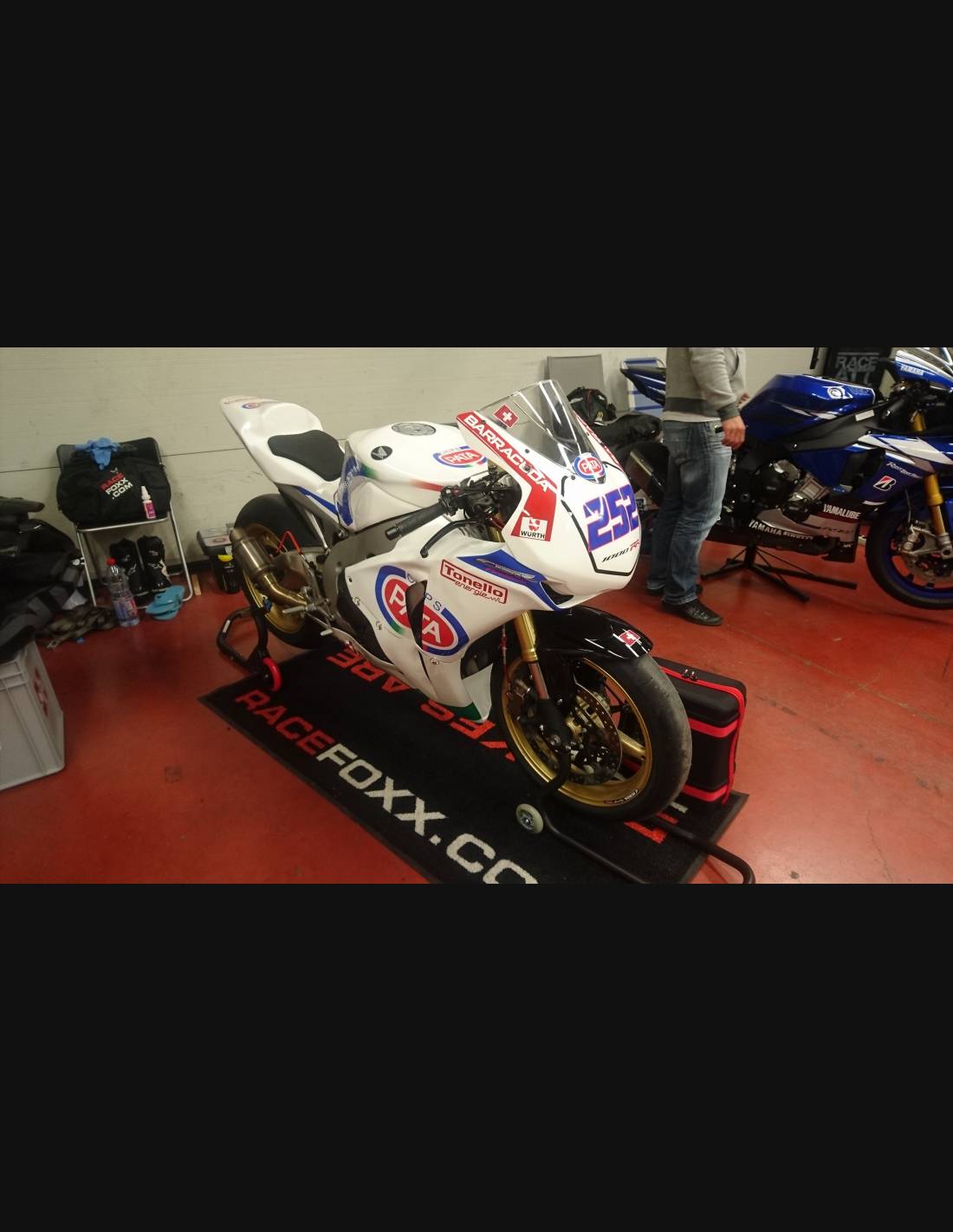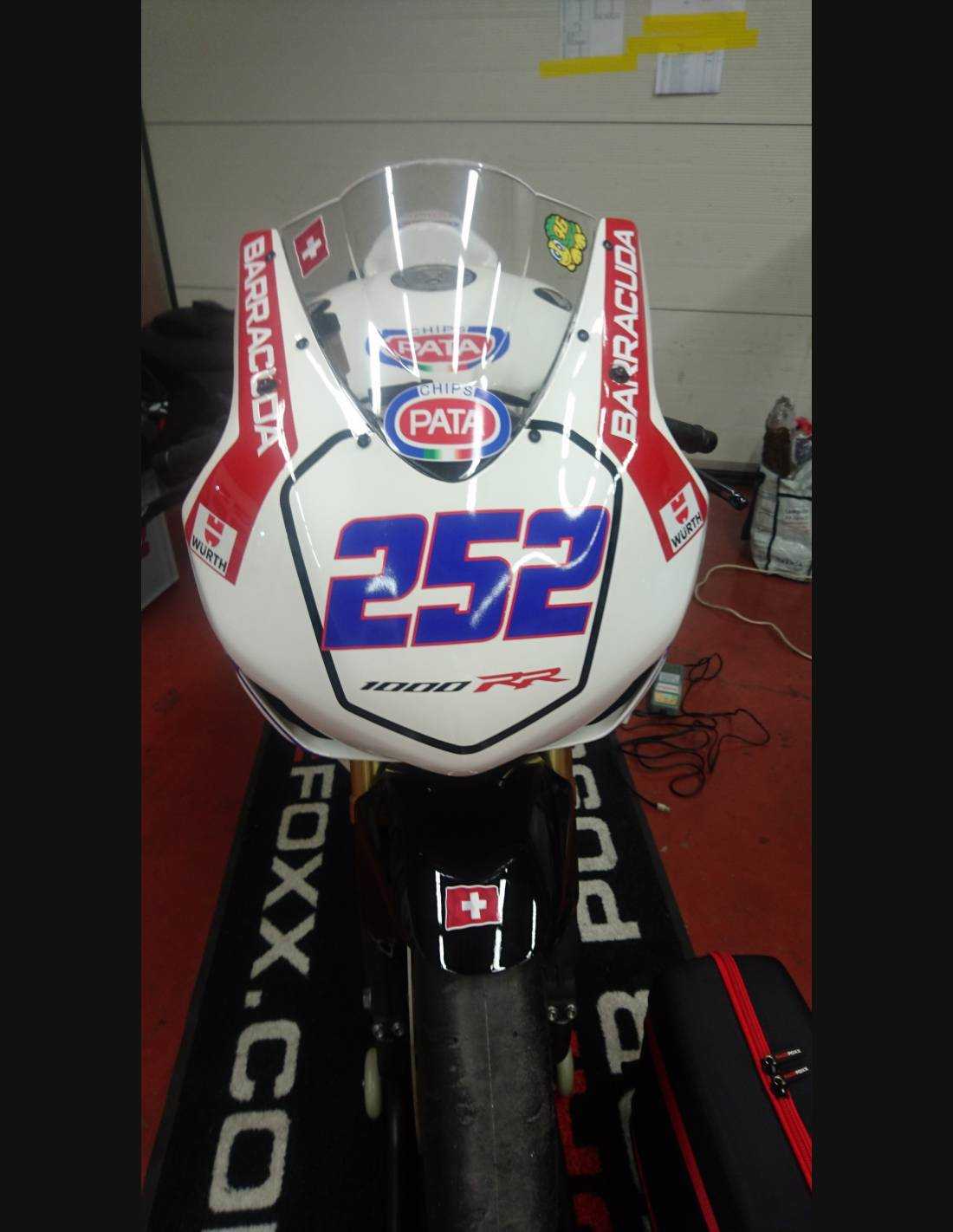 Elite: utilizamos pinturas de alta calidad con tonalidades similares a las originales. Las pegatinas se imprimen con impresoras de 8 colores que les dan un brillo y matices impecables. Todo el gráfico se encuentra bajo tres capas de transparente para mantener los colores del carenado brillantes con el tiempo. También pintamos todo el kit de carenado por dentro.