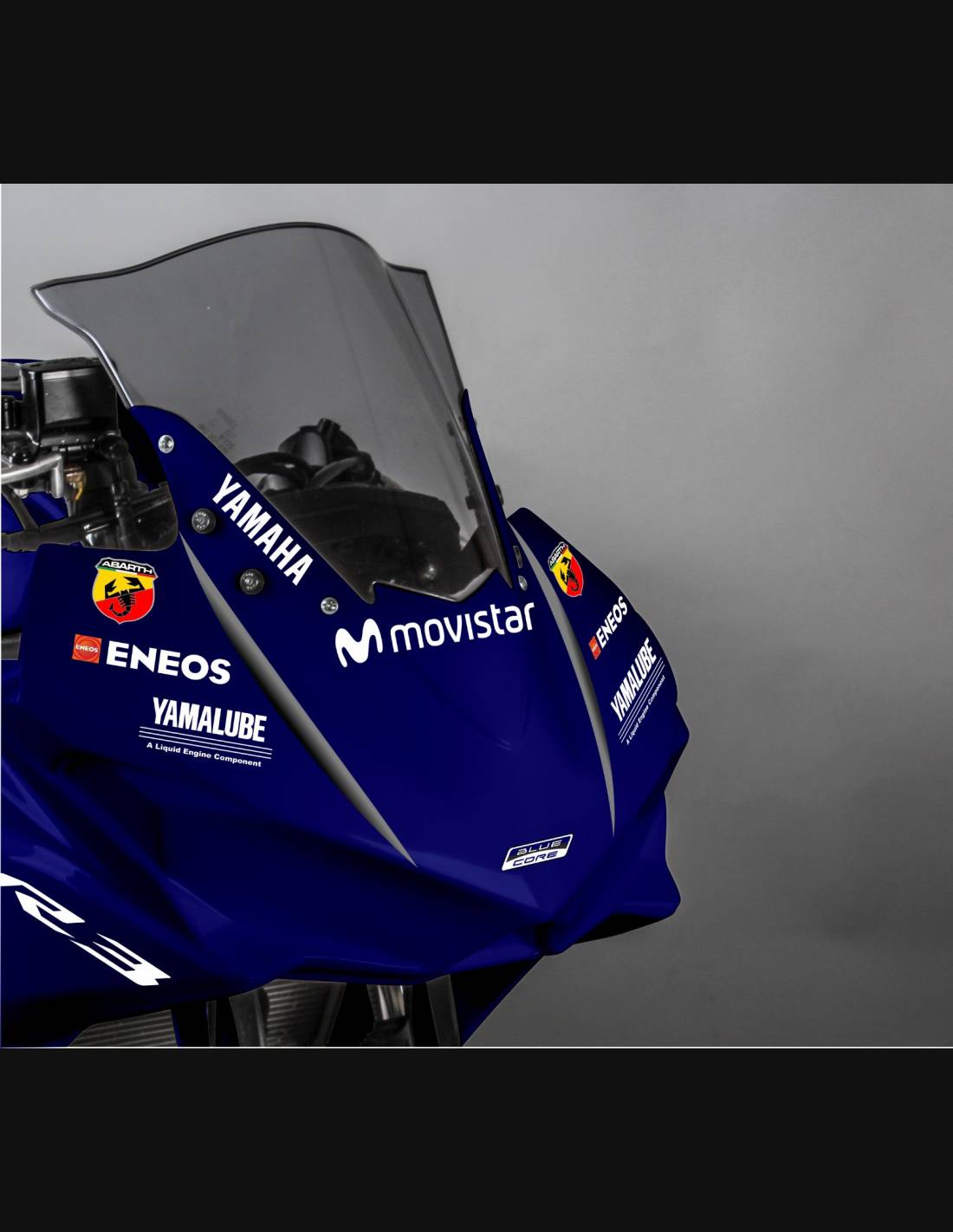 Elite: utilizamos pinturas de alta calidad con tonalidades similares a las originales. Las pegatinas se imprimen con impresoras de 8 colores que les dan un brillo y matices impecables. Todo el gráfico se encuentra bajo tres capas de transparente para mantener los colores del carenado brillantes con el tiempo. También pintamos todo el kit de carenado por dentro.
