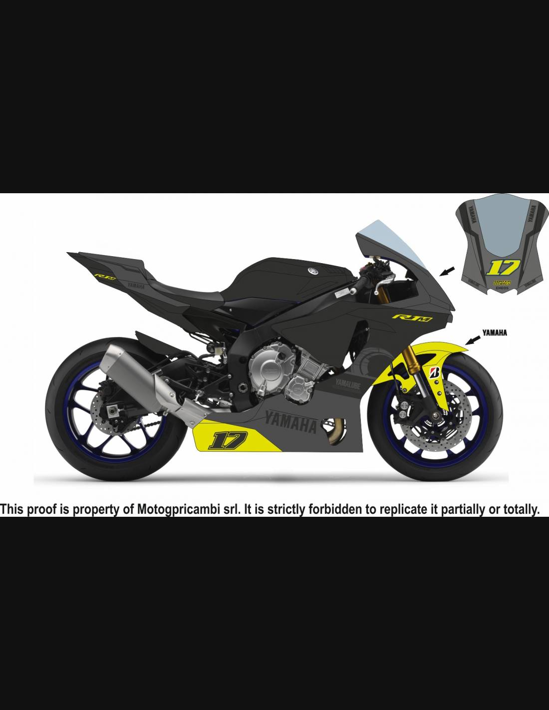 Elite: utilizamos pinturas de alta calidad con tonalidades similares a las originales. Las pegatinas se imprimen con impresoras de 8 colores que les dan un brillo y matices impecables. Todo el gráfico se encuentra bajo tres capas de transparente para mantener los colores del carenado brillantes con el tiempo. También pintamos todo el kit de carenado por dentro.