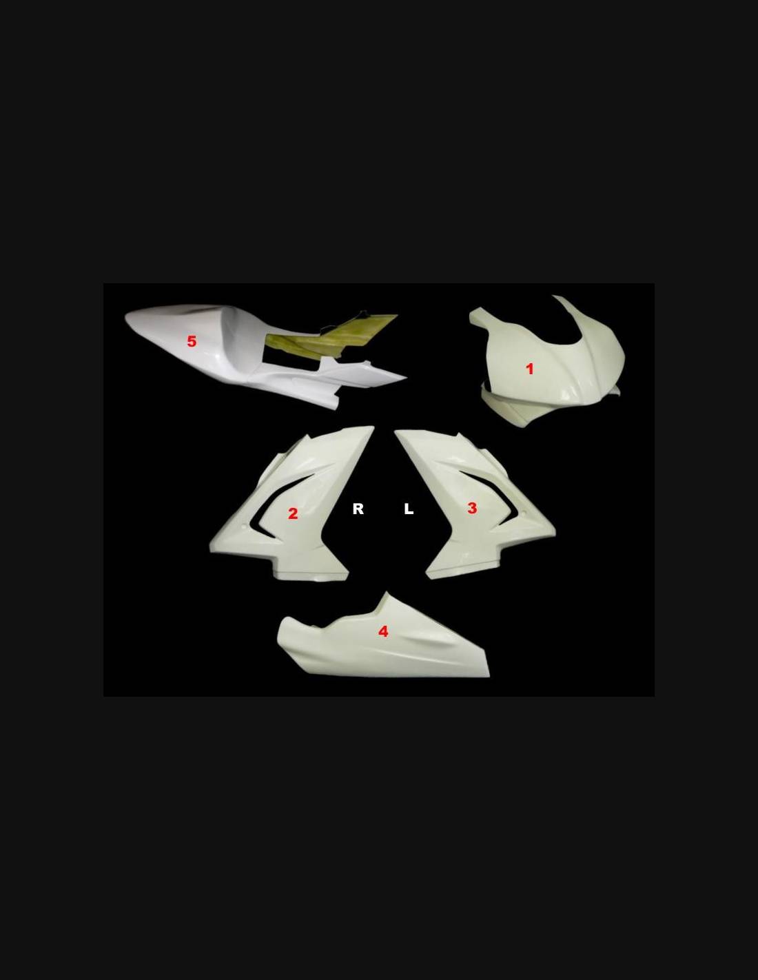El kit de carenados incluye: carenado frontal, laterales de derecha y izquierda, quilla, colin (el cubre deposito no se incluye en el precio)