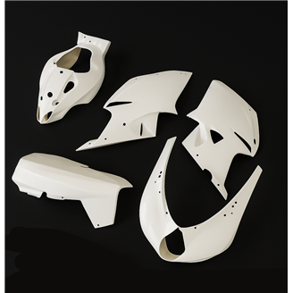 Nuestros carenados racing son en fibra de vidrio, tienen refuerzos en carbono y kevlar en las areas de major stress. Se incluye una quilla cerrada, entonces nuestros carenados son homologados para las competiciones profesionales y amatoriales en las pistas. Indicamos donde tiene que hacer los agujeros, asì puede hacer el agujero de la dimension correcta de su tornillo.