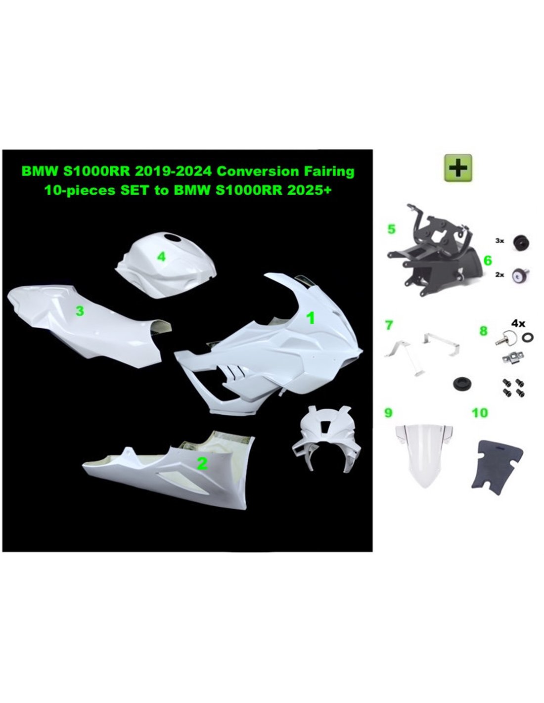 BMW S1000RR 2019-2024 – Juego completo racing – Kit de conversión de 10 piezas a S1000RR 2025 :