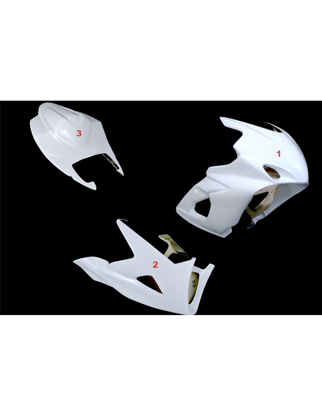 Nuestros carenados racing son en fibra de vidrio, tienen refuerzos en carbono y kevlar en las areas de major stress. Se incluye una quilla cerrada, entonces nuestros carenados son homologados para las competiciones profesionales y amatoriales en las pistas. Indicamos donde tiene que hacer los agujeros, asì puede hacer el agujero de la dimension correcta de su tornillo.