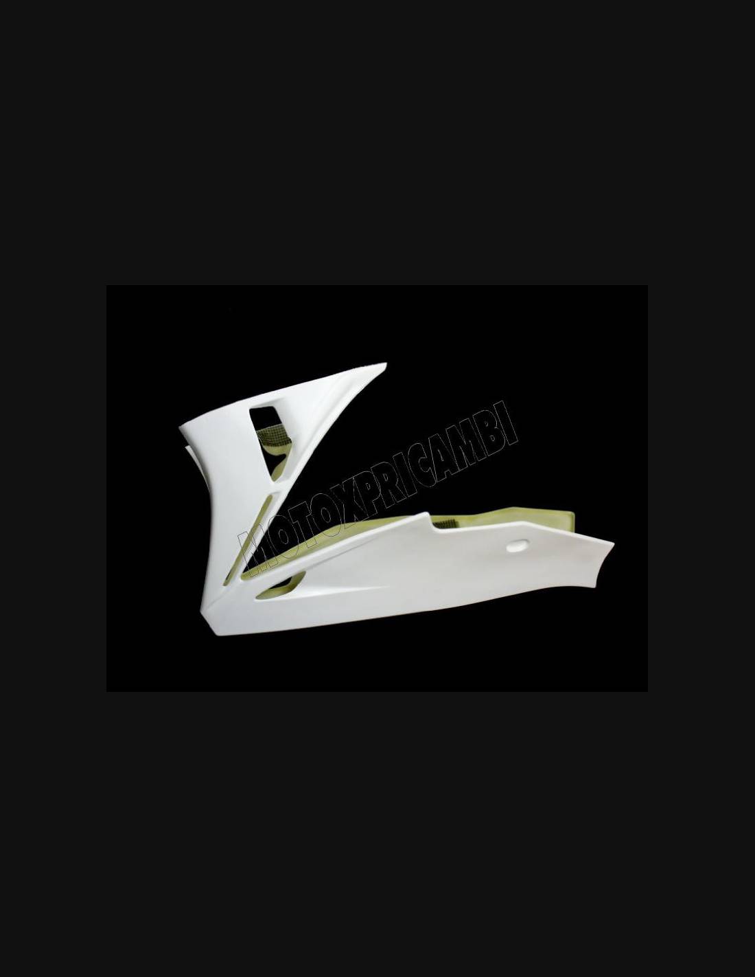 Nuestros carenados racing son en fibra de vidrio, tienen refuerzos en carbono y kevlar en las areas de major stress. Se incluye una quilla cerrada, entonces nuestros carenados son homologados para las competiciones profesionales y amatoriales en las pistas. Indicamos donde tiene que hacer los agujeros, asì puede hacer el agujero de la dimension correcta de su tornillo.