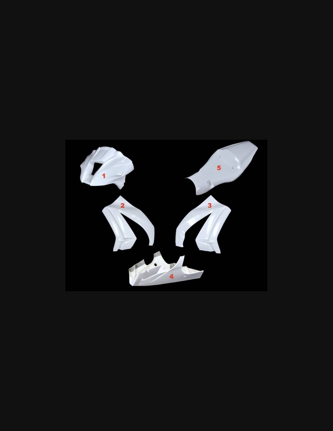 El kit de carenados incluye: carenado frontal, laterales de derecha y izquierda, quilla.