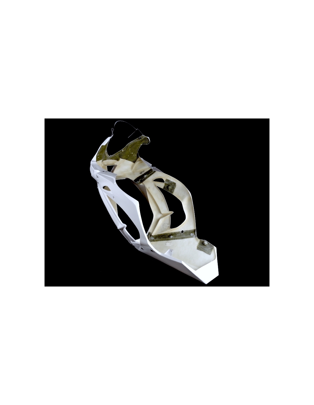Nuestros carenados racing son en fibra de vidrio, tienen refuerzos en carbono y kevlar en las areas de major stress. Se incluye una quilla cerrada, entonces nuestros carenados son homologados para las competiciones profesionales y amatoriales en las pistas. Indicamos donde tiene que hacer los agujeros, asì puede hacer el agujero de la dimension correcta de su tornillo.