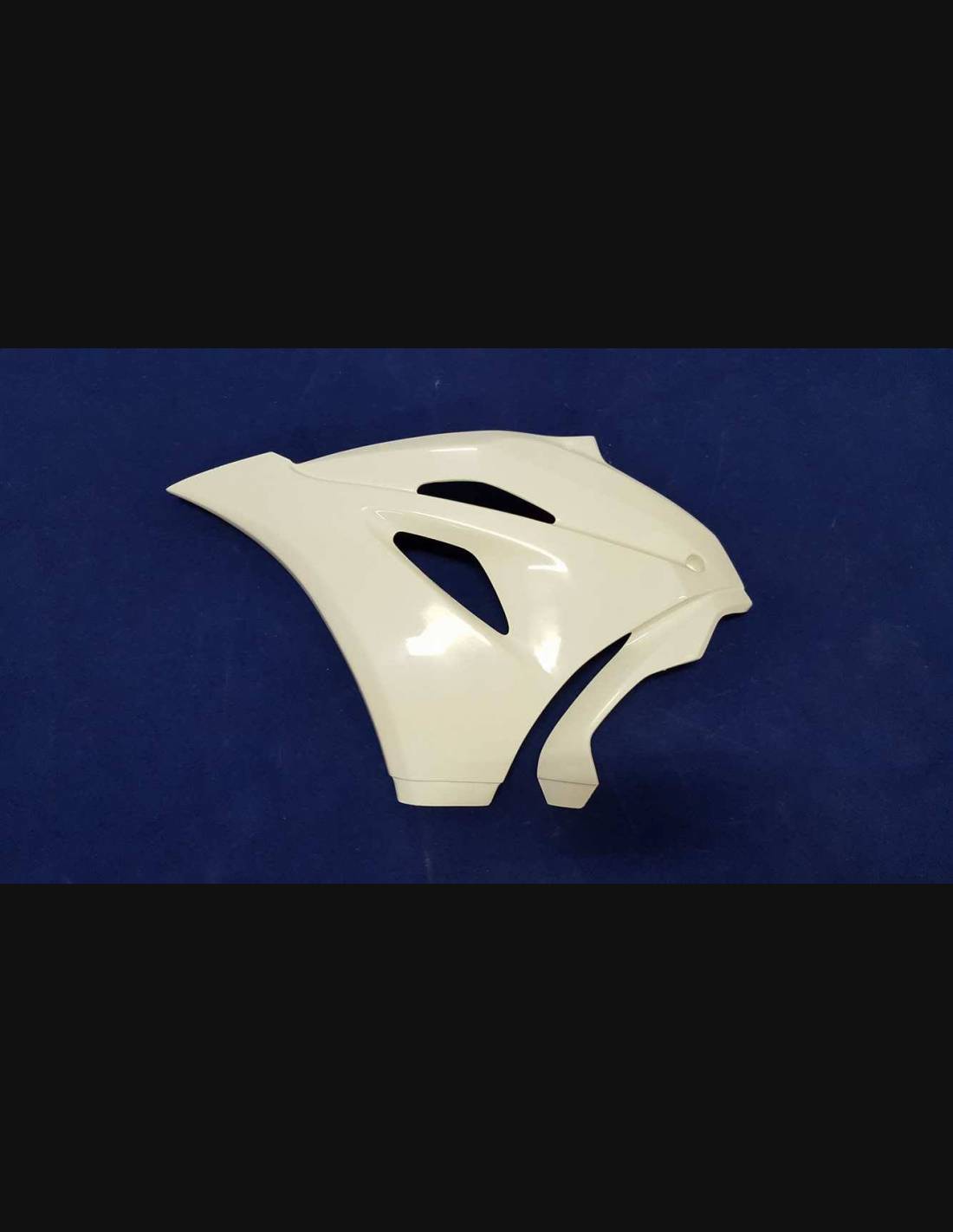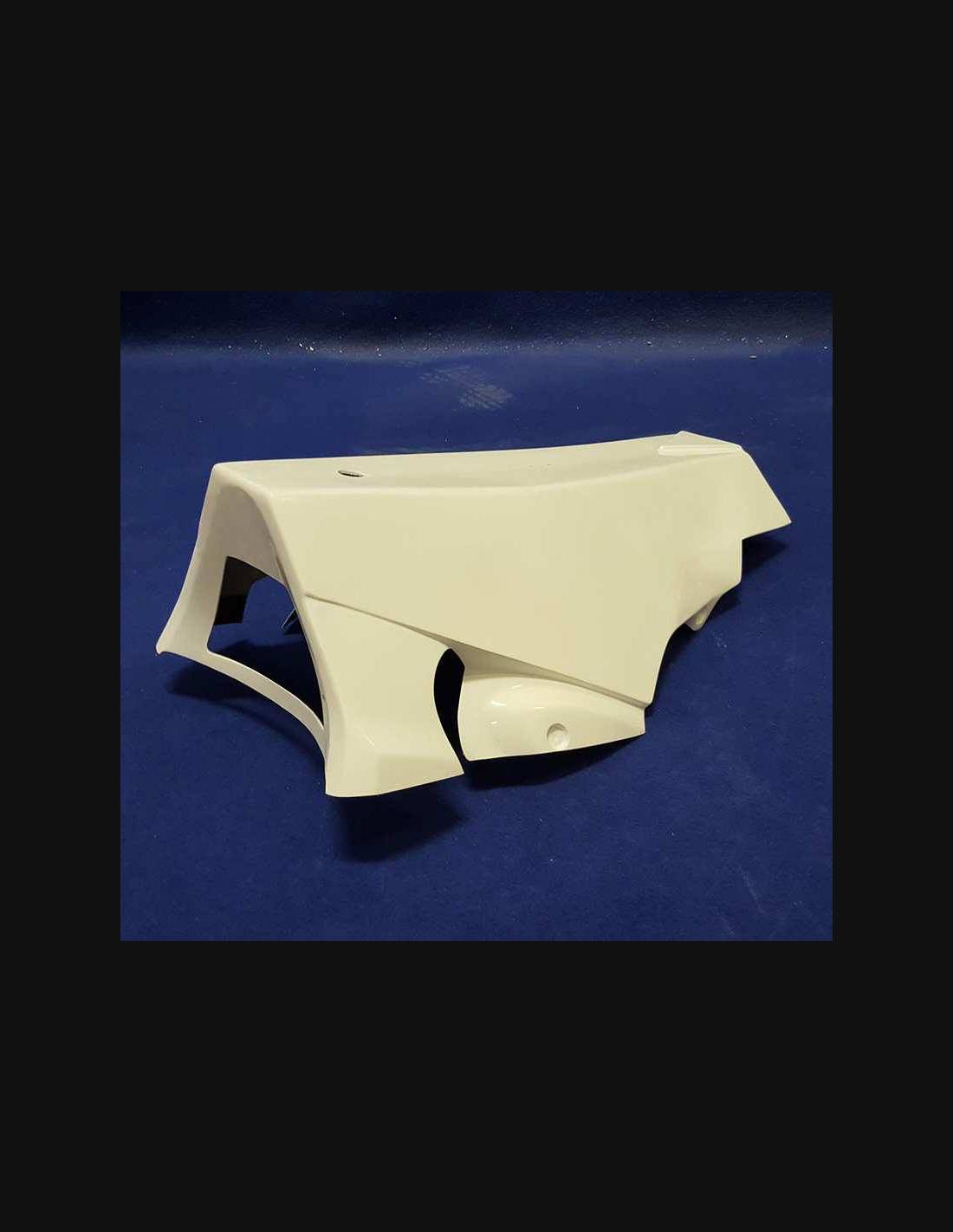 Nuestros carenados racing son en fibra de vidrio, tienen refuerzos en carbono y kevlar en las areas de major stress. Se incluye una quilla cerrada, entonces nuestros carenados son homologados para las competiciones profesionales y amatoriales en las pistas. Indicamos donde tiene que hacer los agujeros, asì puede hacer el agujero de la dimension correcta de su tornillo.