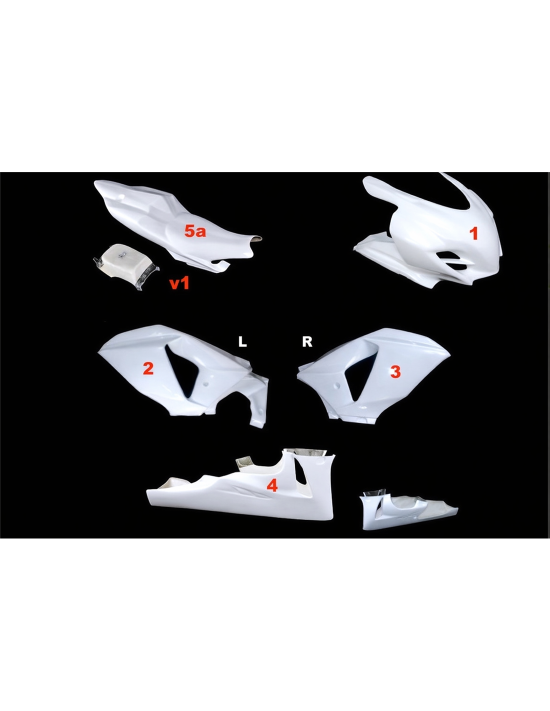 El kit de carenados incluye: carenado frontal, laterales de derecha y izquierda, quilla, colin (el cubre deposito no se incluye en el precio)