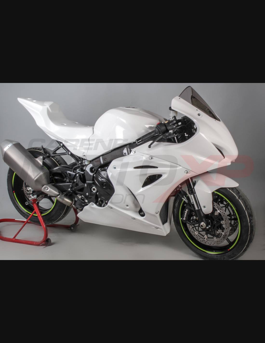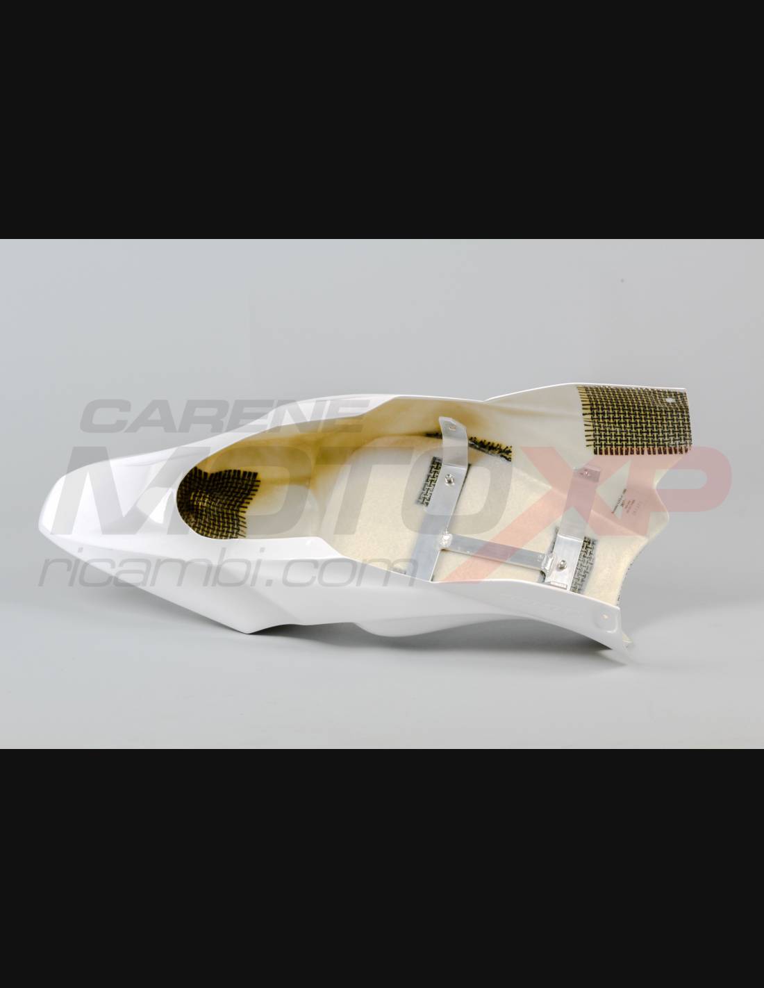 Nuestros carenados racing son en fibra de vidrio, tienen refuerzos en carbono y kevlar en las areas de major stress. Se incluye una quilla cerrada, entonces nuestros carenados son homologados para las competiciones profesionales y amatoriales en las pistas. Indicamos donde tiene que hacer los agujeros, asì puede hacer el agujero de la dimension correcta de su tornillo.