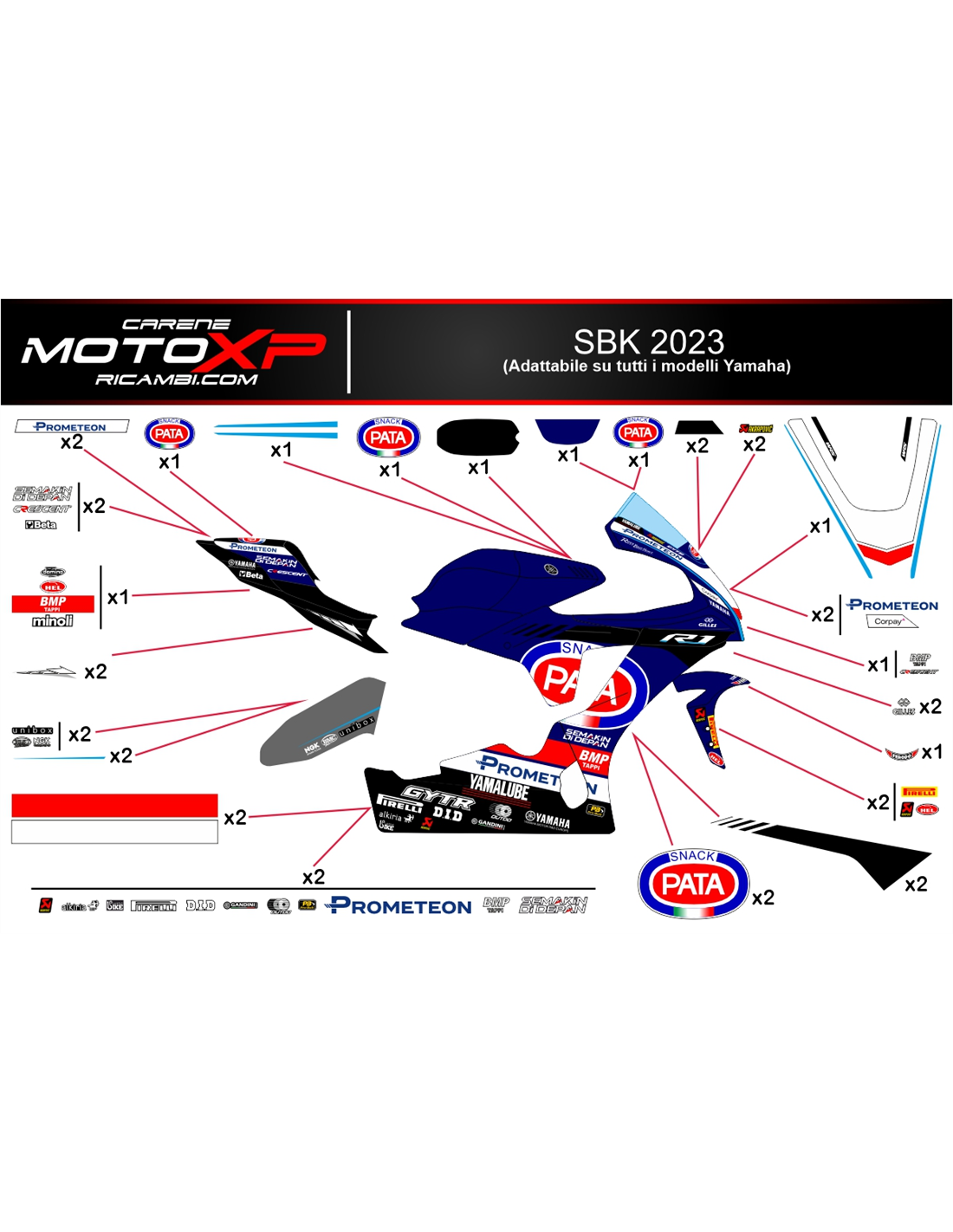 Kit de pegatinas compatible con Yamaha R1 2020 - 2026 - MXPKAD16892