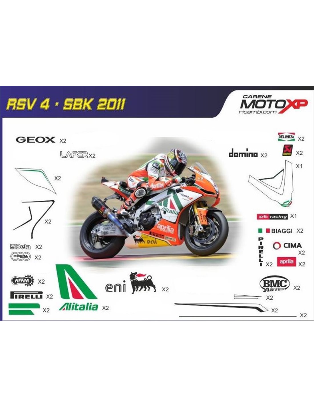 Kit de pegatinas compatible con Aprilia RSV4 2009 - 2014 - MXPKAD8037