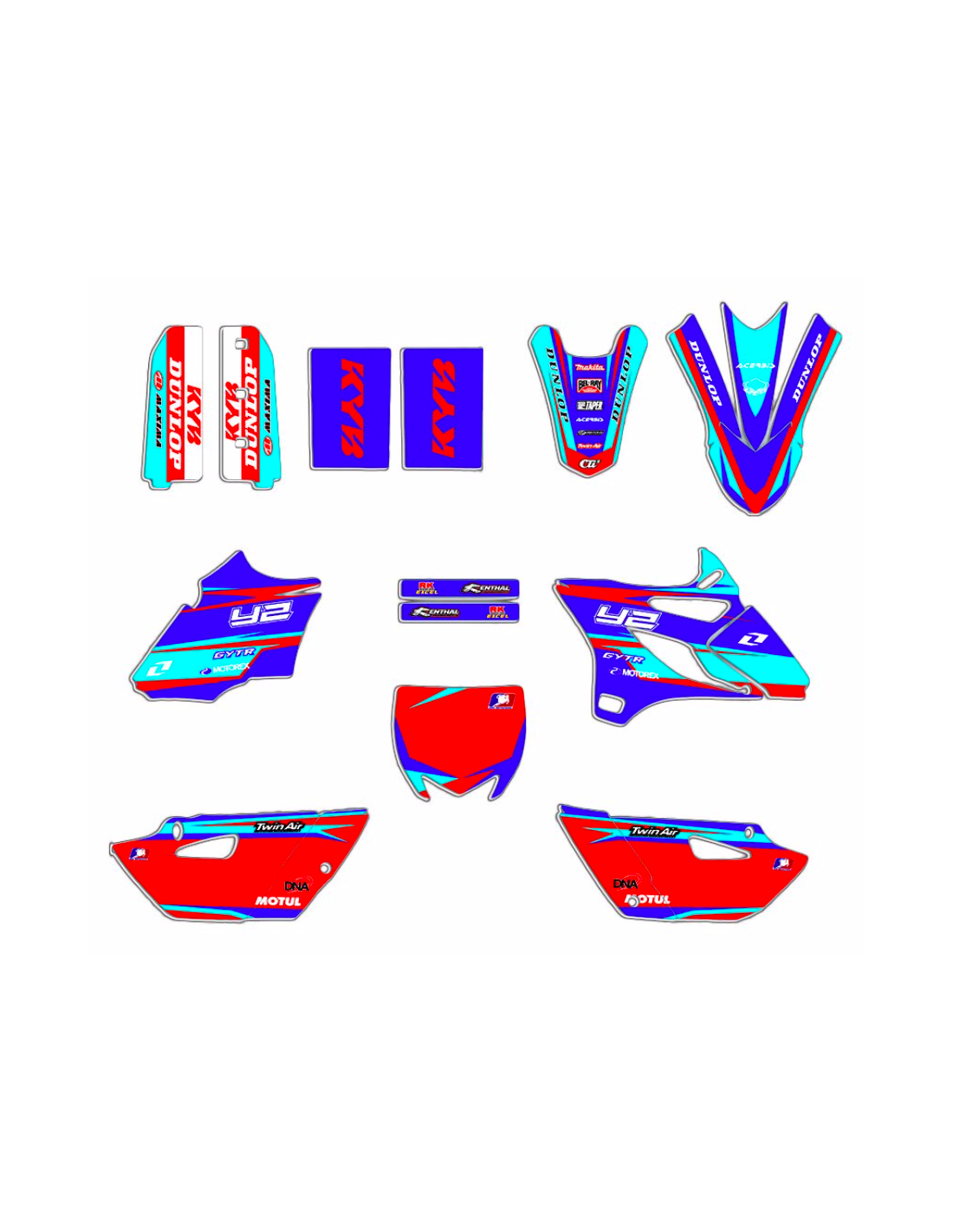 Los adhesivos que producimos están fabricados con materiales crystal de primera calidad que se adaptarán fácil y perfectamente a los plásticos de la motocicleta del cliente. La resistencia del material permite que nuestro gráfico permanezca perfectamente adherido incluso durante las condiciones de uso más difíciles de la motocicleta. La instalación, gracias a los canales de descarga de aire, permite instalar las pegatinas de forma suave y sin burbujas. Utilizamos maquinarias de última generación para la impresión, por lo que podemos imprimir colores brillantes y tonalidades de alta calidad. Incluimos una capa protectora en los adhesivos, para que estén siempre brillantes durante los años y estén protegidas del agua y la suciedad. Es posible personalizar las pegatinas como prefiera. Puede agregar, eliminar o cambiar patrocinadores técnicos, agregar un número de carrera personalizado o su propio nombre. Puede indicar todos los cambios en el campo "Personalización del producto" en el sitio web durante la compra. No nos limitamos solo a los gráficos de nuestro sitio web, puede enviarnos por correo electrónico o WhatsApp una imagen de un diseño que no tenemos, para que podamos hacerle un presupuesto y luego hacerlo. Mediante la compra, se aceptan las condiciones de venta.