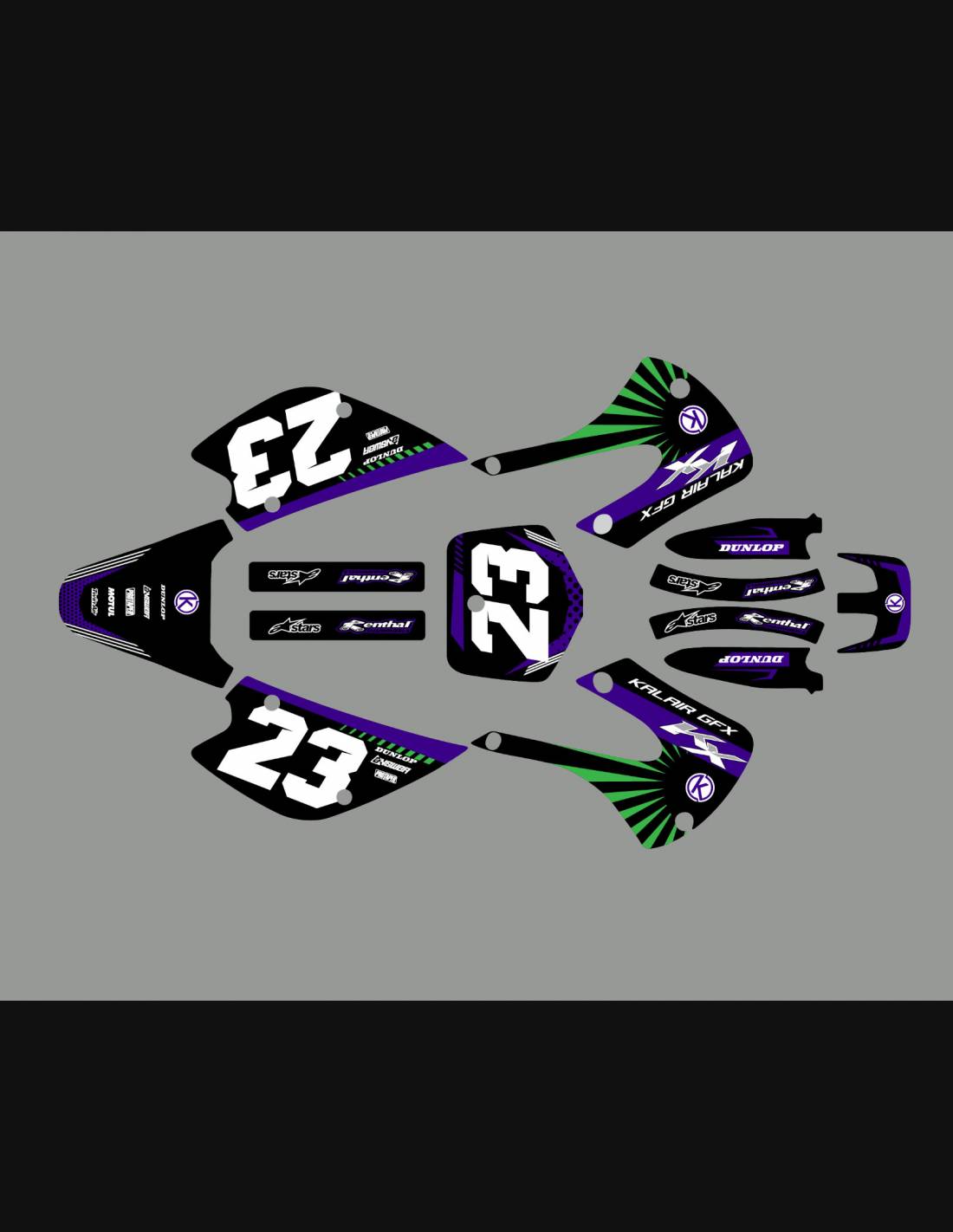 Los adhesivos que producimos están fabricados con materiales crystal de primera calidad que se adaptarán fácil y perfectamente a los plásticos de la motocicleta del cliente. La resistencia del material permite que nuestro gráfico permanezca perfectamente adherido incluso durante las condiciones de uso más difíciles de la motocicleta. La instalación, gracias a los canales de descarga de aire, permite instalar las pegatinas de forma suave y sin burbujas. Utilizamos maquinarias de última generación para la impresión, por lo que podemos imprimir colores brillantes y tonalidades de alta calidad. Incluimos una capa protectora en los adhesivos, para que estén siempre brillantes durante los años y estén protegidas del agua y la suciedad. Es posible personalizar las pegatinas como prefiera. Puede agregar, eliminar o cambiar patrocinadores técnicos, agregar un número de carrera personalizado o su propio nombre. Puede indicar todos los cambios en el campo "Personalización del producto" en el sitio web durante la compra. No nos limitamos solo a los gráficos de nuestro sitio web, puede enviarnos por correo electrónico o WhatsApp una imagen de un diseño que no tenemos, para que podamos hacerle un presupuesto y luego hacerlo. Mediante la compra, se aceptan las condiciones de venta.