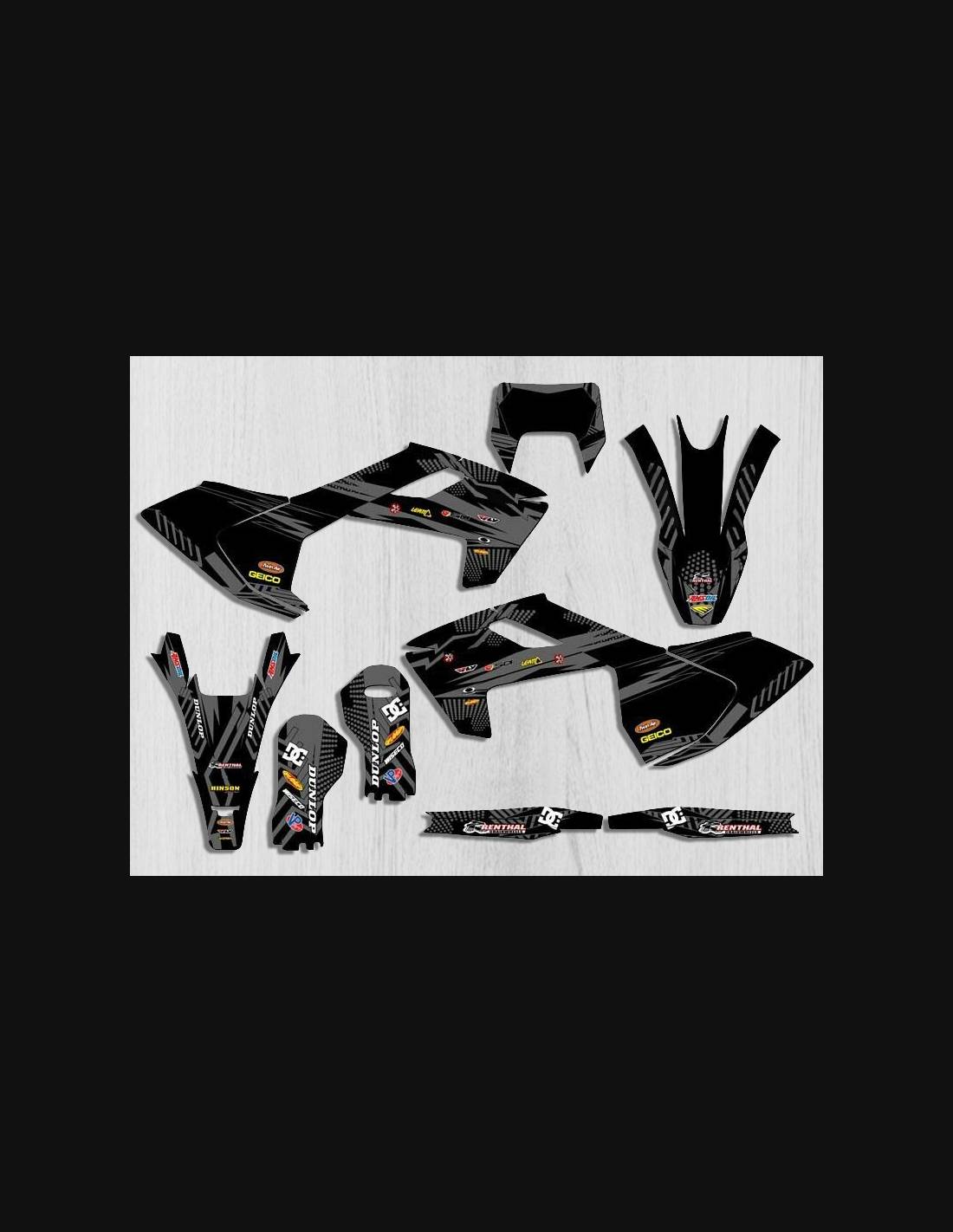 Los adhesivos que producimos están fabricados con materiales crystal de primera calidad que se adaptarán fácil y perfectamente a los plásticos de la motocicleta del cliente. La resistencia del material permite que nuestro gráfico permanezca perfectamente adherido incluso durante las condiciones de uso más difíciles de la motocicleta. La instalación, gracias a los canales de descarga de aire, permite instalar las pegatinas de forma suave y sin burbujas. Utilizamos maquinarias de última generación para la impresión, por lo que podemos imprimir colores brillantes y tonalidades de alta calidad. Incluimos una capa protectora en los adhesivos, para que estén siempre brillantes durante los años y estén protegidas del agua y la suciedad. Es posible personalizar las pegatinas como prefiera. Puede agregar, eliminar o cambiar patrocinadores técnicos, agregar un número de carrera personalizado o su propio nombre. Puede indicar todos los cambios en el campo "Personalización del producto" en el sitio web durante la compra. No nos limitamos solo a los gráficos de nuestro sitio web, puede enviarnos por correo electrónico o WhatsApp una imagen de un diseño que no tenemos, para que podamos hacerle un presupuesto y luego hacerlo. Mediante la compra, se aceptan las condiciones de venta.