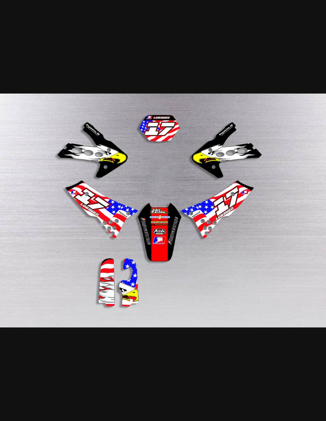 Los adhesivos que producimos están fabricados con materiales crystal de primera calidad que se adaptarán fácil y perfectamente a los plásticos de la motocicleta del cliente. La resistencia del material permite que nuestro gráfico permanezca perfectamente adherido incluso durante las condiciones de uso más difíciles de la motocicleta. La instalación, gracias a los canales de descarga de aire, permite instalar las pegatinas de forma suave y sin burbujas. Utilizamos maquinarias de última generación para la impresión, por lo que podemos imprimir colores brillantes y tonalidades de alta calidad. Incluimos una capa protectora en los adhesivos, para que estén siempre brillantes durante los años y estén protegidas del agua y la suciedad. Es posible personalizar las pegatinas como prefiera. Puede agregar, eliminar o cambiar patrocinadores técnicos, agregar un número de carrera personalizado o su propio nombre. Puede indicar todos los cambios en el campo "Personalización del producto" en el sitio web durante la compra. No nos limitamos solo a los gráficos de nuestro sitio web, puede enviarnos por correo electrónico o WhatsApp una imagen de un diseño que no tenemos, para que podamos hacerle un presupuesto y luego hacerlo. Mediante la compra, se aceptan las condiciones de venta.