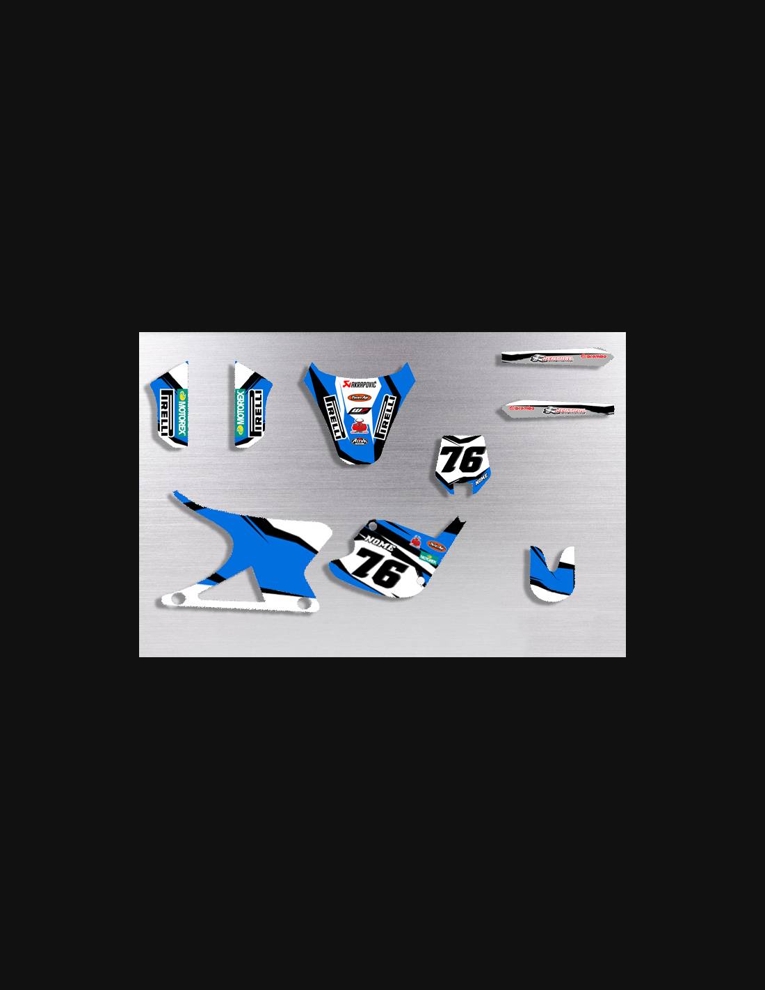Los adhesivos que producimos están fabricados con materiales crystal de primera calidad que se adaptarán fácil y perfectamente a los plásticos de la motocicleta del cliente. La resistencia del material permite que nuestro gráfico permanezca perfectamente adherido incluso durante las condiciones de uso más difíciles de la motocicleta. La instalación, gracias a los canales de descarga de aire, permite instalar las pegatinas de forma suave y sin burbujas. Utilizamos maquinarias de última generación para la impresión, por lo que podemos imprimir colores brillantes y tonalidades de alta calidad. Incluimos una capa protectora en los adhesivos, para que estén siempre brillantes durante los años y estén protegidas del agua y la suciedad. Es posible personalizar las pegatinas como prefiera. Puede agregar, eliminar o cambiar patrocinadores técnicos, agregar un número de carrera personalizado o su propio nombre. Puede indicar todos los cambios en el campo "Personalización del producto" en el sitio web durante la compra. No nos limitamos solo a los gráficos de nuestro sitio web, puede enviarnos por correo electrónico o WhatsApp una imagen de un diseño que no tenemos, para que podamos hacerle un presupuesto y luego hacerlo. Mediante la compra, se aceptan las condiciones de venta.