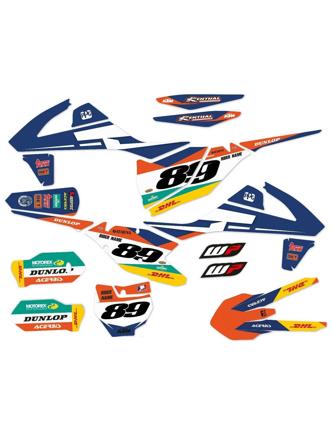 Los adhesivos que producimos están fabricados con materiales crystal de primera calidad que se adaptarán fácil y perfectamente a los plásticos de la motocicleta del cliente. La resistencia del material permite que nuestro gráfico permanezca perfectamente adherido incluso durante las condiciones de uso más difíciles de la motocicleta. La instalación, gracias a los canales de descarga de aire, permite instalar las pegatinas de forma suave y sin burbujas. Utilizamos maquinarias de última generación para la impresión, por lo que podemos imprimir colores brillantes y tonalidades de alta calidad. Incluimos una capa protectora en los adhesivos, para que estén siempre brillantes durante los años y estén protegidas del agua y la suciedad. Es posible personalizar las pegatinas como prefiera. Puede agregar, eliminar o cambiar patrocinadores técnicos, agregar un número de carrera personalizado o su propio nombre. Puede indicar todos los cambios en el campo "Personalización del producto" en el sitio web durante la compra. No nos limitamos solo a los gráficos de nuestro sitio web, puede enviarnos por correo electrónico o WhatsApp una imagen de un diseño que no tenemos, para que podamos hacerle un presupuesto y luego hacerlo. Mediante la compra, se aceptan las condiciones de venta.