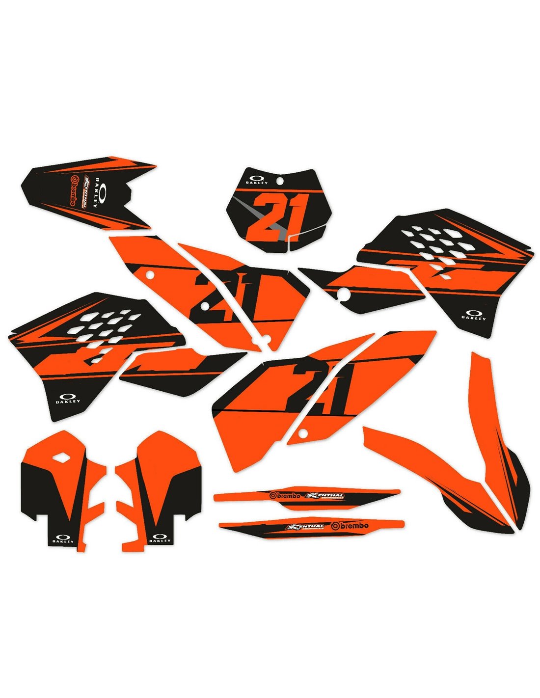 Los adhesivos que producimos están fabricados con materiales crystal de primera calidad que se adaptarán fácil y perfectamente a los plásticos de la motocicleta del cliente. La resistencia del material permite que nuestro gráfico permanezca perfectamente adherido incluso durante las condiciones de uso más difíciles de la motocicleta. La instalación, gracias a los canales de descarga de aire, permite instalar las pegatinas de forma suave y sin burbujas. Utilizamos maquinarias de última generación para la impresión, por lo que podemos imprimir colores brillantes y tonalidades de alta calidad. Incluimos una capa protectora en los adhesivos, para que estén siempre brillantes durante los años y estén protegidas del agua y la suciedad. Es posible personalizar las pegatinas como prefiera. Puede agregar, eliminar o cambiar patrocinadores técnicos, agregar un número de carrera personalizado o su propio nombre. Puede indicar todos los cambios en el campo "Personalización del producto" en el sitio web durante la compra. No nos limitamos solo a los gráficos de nuestro sitio web, puede enviarnos por correo electrónico o WhatsApp una imagen de un diseño que no tenemos, para que podamos hacerle un presupuesto y luego hacerlo. Mediante la compra, se aceptan las condiciones de venta.