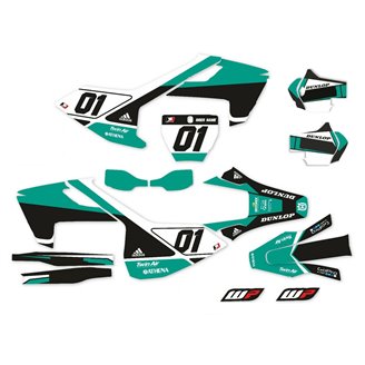 Los adhesivos que producimos están fabricados con materiales crystal de primera calidad que se adaptarán fácil y perfectamente a los plásticos de la motocicleta del cliente. La resistencia del material permite que nuestro gráfico permanezca perfectamente adherido incluso durante las condiciones de uso más difíciles de la motocicleta. La instalación, gracias a los canales de descarga de aire, permite instalar las pegatinas de forma suave y sin burbujas. Utilizamos maquinarias de última generación para la impresión, por lo que podemos imprimir colores brillantes y tonalidades de alta calidad. Incluimos una capa protectora en los adhesivos, para que estén siempre brillantes durante los años y estén protegidas del agua y la suciedad. Es posible personalizar las pegatinas como prefiera. Puede agregar, eliminar o cambiar patrocinadores técnicos, agregar un número de carrera personalizado o su propio nombre. Puede indicar todos los cambios en el campo "Personalización del producto" en el sitio web durante la compra. No nos limitamos solo a los gráficos de nuestro sitio web, puede enviarnos por correo electrónico o WhatsApp una imagen de un diseño que no tenemos, para que podamos hacerle un presupuesto y luego hacerlo. Mediante la compra, se aceptan las condiciones de venta.