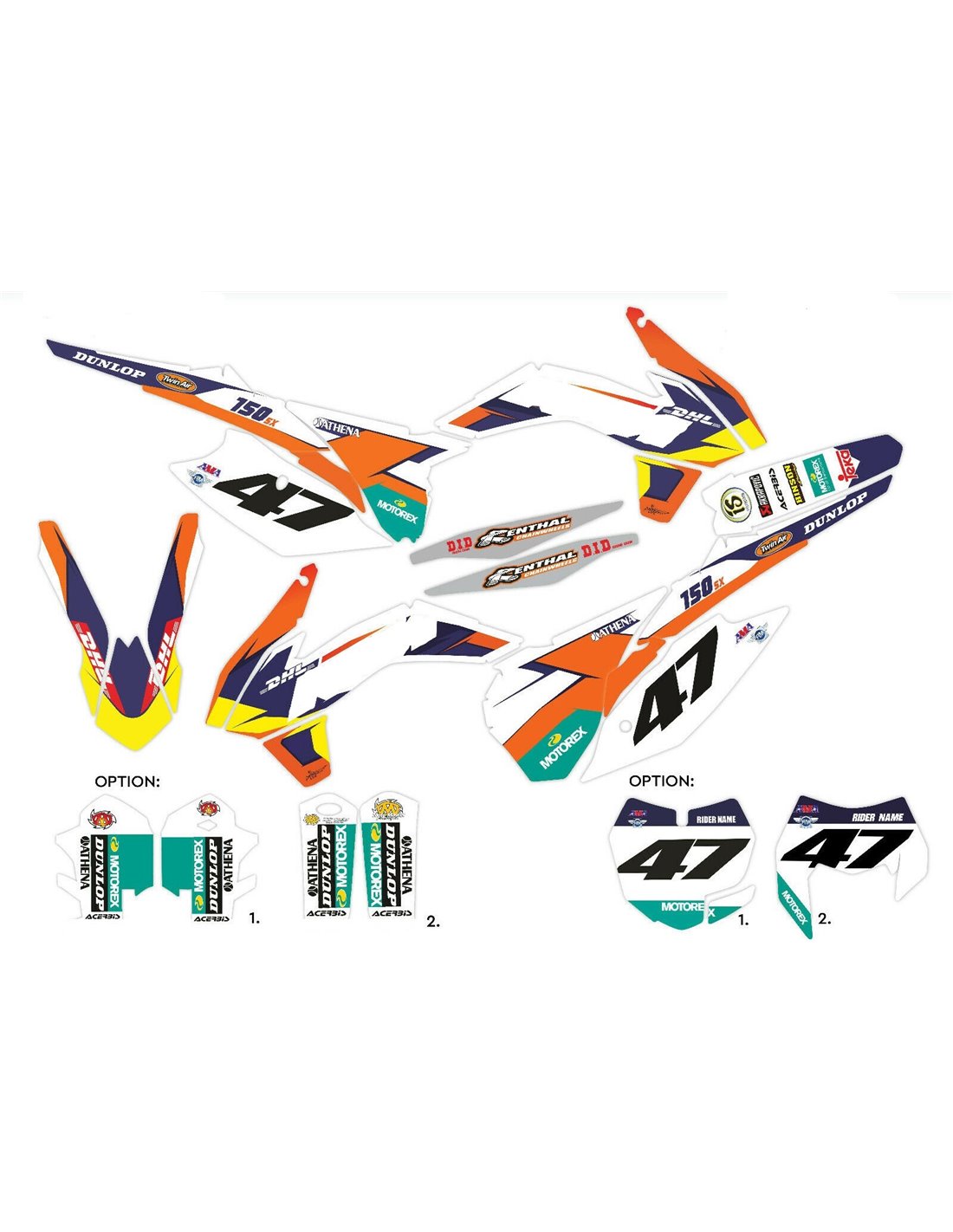 Los adhesivos que producimos están fabricados con materiales crystal de primera calidad que se adaptarán fácil y perfectamente a los plásticos de la motocicleta del cliente. La resistencia del material permite que nuestro gráfico permanezca perfectamente adherido incluso durante las condiciones de uso más difíciles de la motocicleta. La instalación, gracias a los canales de descarga de aire, permite instalar las pegatinas de forma suave y sin burbujas. Utilizamos maquinarias de última generación para la impresión, por lo que podemos imprimir colores brillantes y tonalidades de alta calidad. Incluimos una capa protectora en los adhesivos, para que estén siempre brillantes durante los años y estén protegidas del agua y la suciedad. Es posible personalizar las pegatinas como prefiera. Puede agregar, eliminar o cambiar patrocinadores técnicos, agregar un número de carrera personalizado o su propio nombre. Puede indicar todos los cambios en el campo "Personalización del producto" en el sitio web durante la compra. No nos limitamos solo a los gráficos de nuestro sitio web, puede enviarnos por correo electrónico o WhatsApp una imagen de un diseño que no tenemos, para que podamos hacerle un presupuesto y luego hacerlo. Mediante la compra, se aceptan las condiciones de venta.