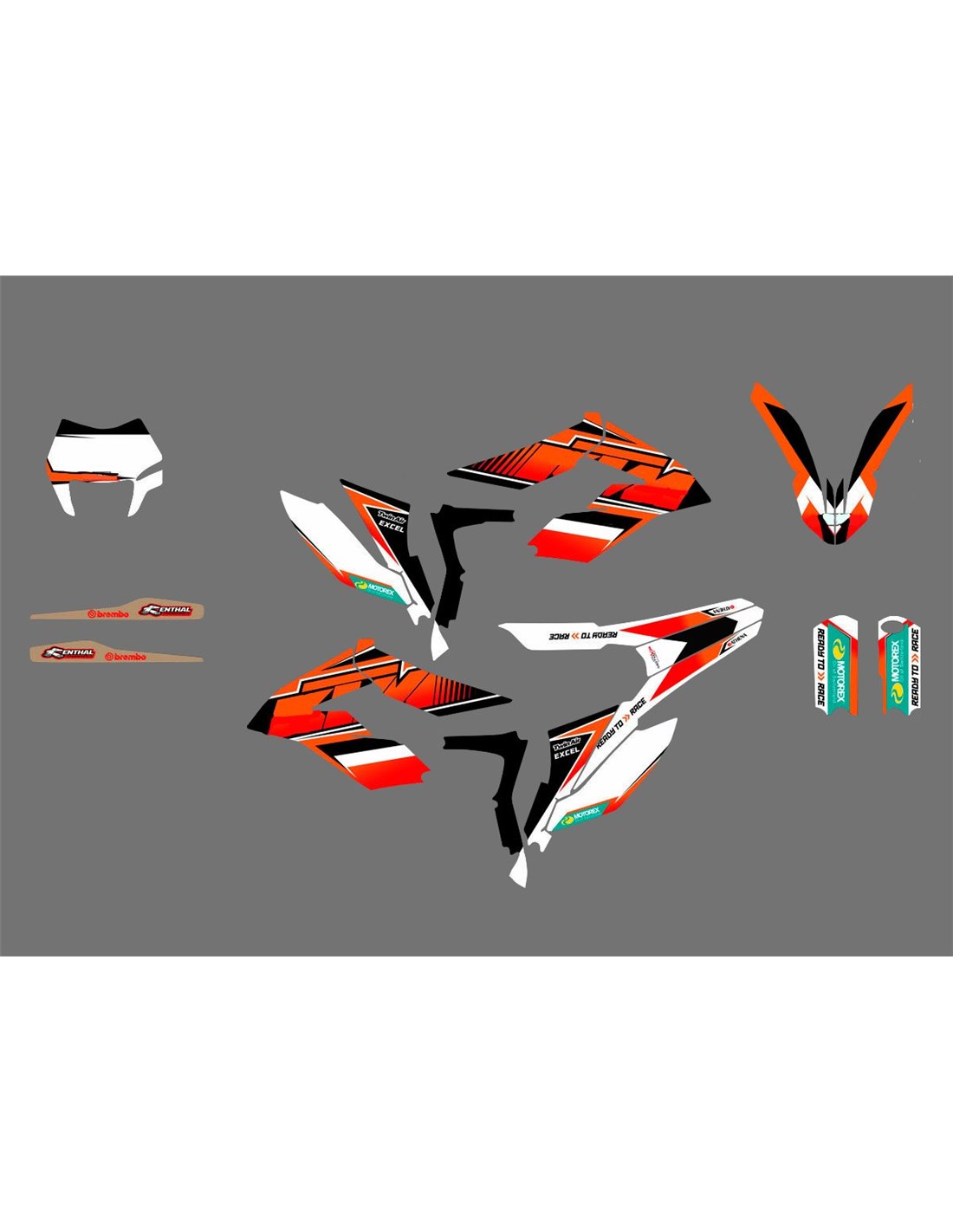 Los adhesivos que producimos están fabricados con materiales crystal de primera calidad que se adaptarán fácil y perfectamente a los plásticos de la motocicleta del cliente. La resistencia del material permite que nuestro gráfico permanezca perfectamente adherido incluso durante las condiciones de uso más difíciles de la motocicleta. La instalación, gracias a los canales de descarga de aire, permite instalar las pegatinas de forma suave y sin burbujas. Utilizamos maquinarias de última generación para la impresión, por lo que podemos imprimir colores brillantes y tonalidades de alta calidad. Incluimos una capa protectora en los adhesivos, para que estén siempre brillantes durante los años y estén protegidas del agua y la suciedad. Es posible personalizar las pegatinas como prefiera. Puede agregar, eliminar o cambiar patrocinadores técnicos, agregar un número de carrera personalizado o su propio nombre. Puede indicar todos los cambios en el campo "Personalización del producto" en el sitio web durante la compra. No nos limitamos solo a los gráficos de nuestro sitio web, puede enviarnos por correo electrónico o WhatsApp una imagen de un diseño que no tenemos, para que podamos hacerle un presupuesto y luego hacerlo. Mediante la compra, se aceptan las condiciones de venta.
