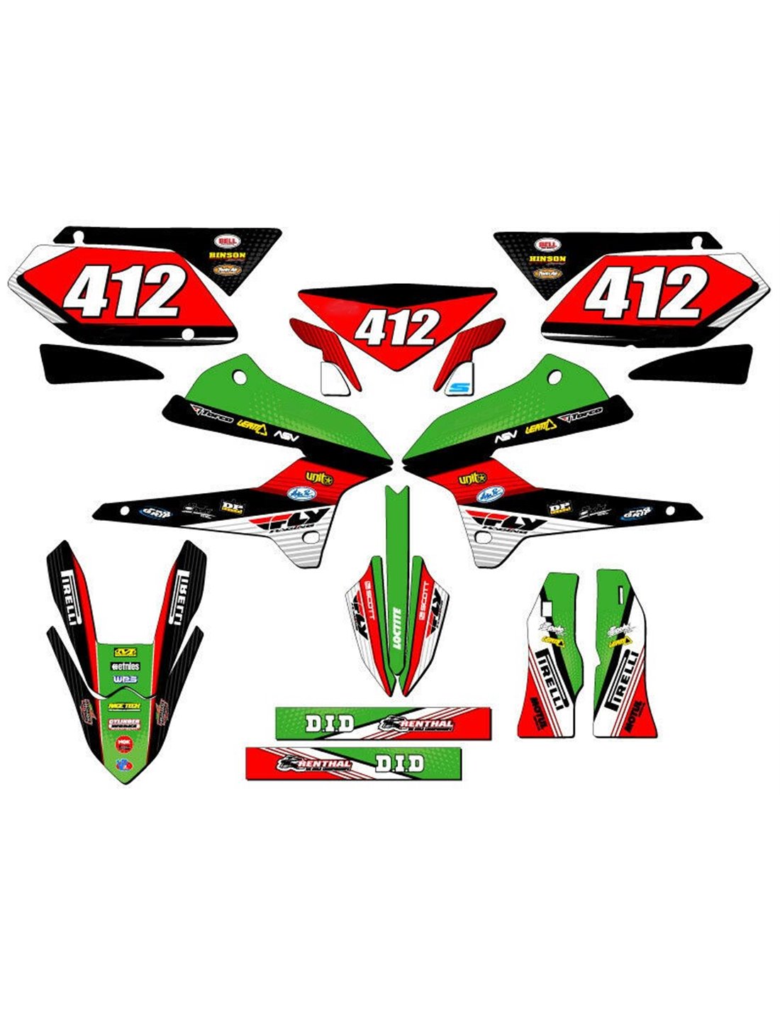 Los adhesivos que producimos están fabricados con materiales crystal de primera calidad que se adaptarán fácil y perfectamente a los plásticos de la motocicleta del cliente. La resistencia del material permite que nuestro gráfico permanezca perfectamente adherido incluso durante las condiciones de uso más difíciles de la motocicleta. La instalación, gracias a los canales de descarga de aire, permite instalar las pegatinas de forma suave y sin burbujas. Utilizamos maquinarias de última generación para la impresión, por lo que podemos imprimir colores brillantes y tonalidades de alta calidad. Incluimos una capa protectora en los adhesivos, para que estén siempre brillantes durante los años y estén protegidas del agua y la suciedad. Es posible personalizar las pegatinas como prefiera. Puede agregar, eliminar o cambiar patrocinadores técnicos, agregar un número de carrera personalizado o su propio nombre. Puede indicar todos los cambios en el campo "Personalización del producto" en el sitio web durante la compra. No nos limitamos solo a los gráficos de nuestro sitio web, puede enviarnos por correo electrónico o WhatsApp una imagen de un diseño que no tenemos, para que podamos hacerle un presupuesto y luego hacerlo. Mediante la compra, se aceptan las condiciones de venta.