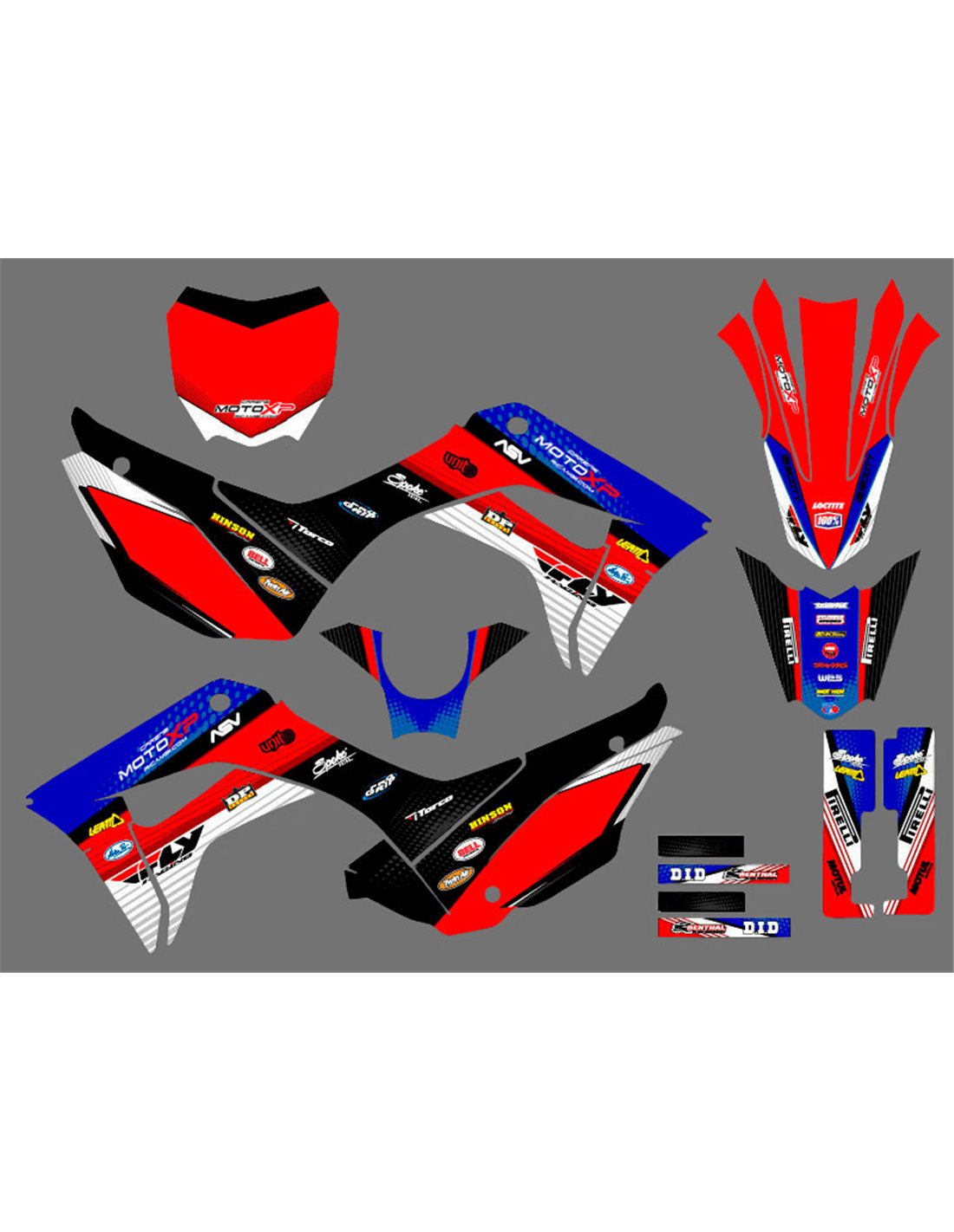 Los adhesivos que producimos están fabricados con materiales crystal de primera calidad que se adaptarán fácil y perfectamente a los plásticos de la motocicleta del cliente. La resistencia del material permite que nuestro gráfico permanezca perfectamente adherido incluso durante las condiciones de uso más difíciles de la motocicleta. La instalación, gracias a los canales de descarga de aire, permite instalar las pegatinas de forma suave y sin burbujas. Utilizamos maquinarias de última generación para la impresión, por lo que podemos imprimir colores brillantes y tonalidades de alta calidad. Incluimos una capa protectora en los adhesivos, para que estén siempre brillantes durante los años y estén protegidas del agua y la suciedad. Es posible personalizar las pegatinas como prefiera. Puede agregar, eliminar o cambiar patrocinadores técnicos, agregar un número de carrera personalizado o su propio nombre. Puede indicar todos los cambios en el campo "Personalización del producto" en el sitio web durante la compra. No nos limitamos solo a los gráficos de nuestro sitio web, puede enviarnos por correo electrónico o WhatsApp una imagen de un diseño que no tenemos, para que podamos hacerle un presupuesto y luego hacerlo. Mediante la compra, se aceptan las condiciones de venta.