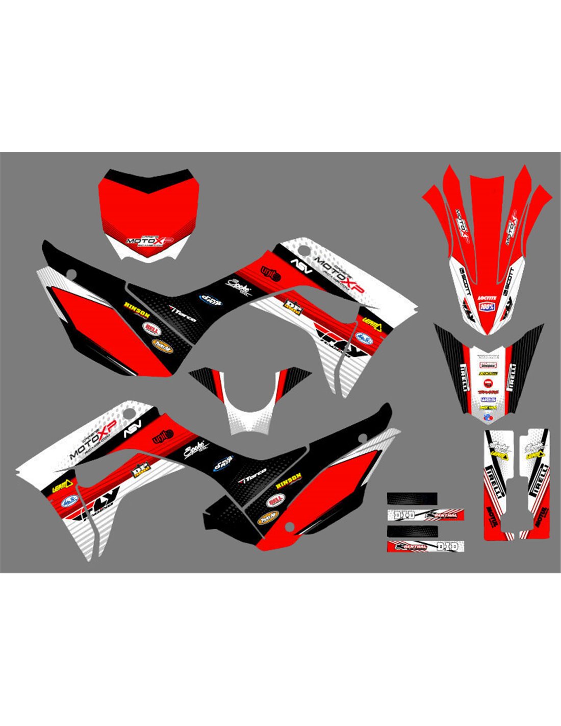 Los adhesivos que producimos están fabricados con materiales crystal de primera calidad que se adaptarán fácil y perfectamente a los plásticos de la motocicleta del cliente. La resistencia del material permite que nuestro gráfico permanezca perfectamente adherido incluso durante las condiciones de uso más difíciles de la motocicleta. La instalación, gracias a los canales de descarga de aire, permite instalar las pegatinas de forma suave y sin burbujas. Utilizamos maquinarias de última generación para la impresión, por lo que podemos imprimir colores brillantes y tonalidades de alta calidad. Incluimos una capa protectora en los adhesivos, para que estén siempre brillantes durante los años y estén protegidas del agua y la suciedad. Es posible personalizar las pegatinas como prefiera. Puede agregar, eliminar o cambiar patrocinadores técnicos, agregar un número de carrera personalizado o su propio nombre. Puede indicar todos los cambios en el campo "Personalización del producto" en el sitio web durante la compra. No nos limitamos solo a los gráficos de nuestro sitio web, puede enviarnos por correo electrónico o WhatsApp una imagen de un diseño que no tenemos, para que podamos hacerle un presupuesto y luego hacerlo. Mediante la compra, se aceptan las condiciones de venta.