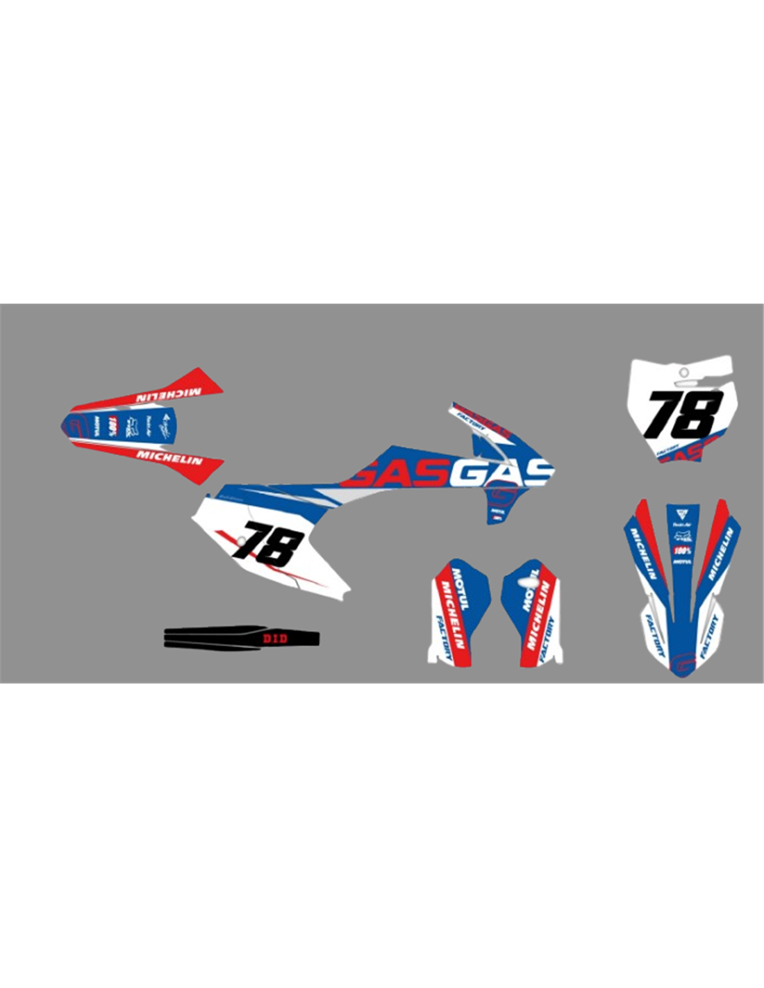 Los adhesivos que producimos están fabricados con materiales crystal de primera calidad que se adaptarán fácil y perfectamente a los plásticos de la motocicleta del cliente. La resistencia del material permite que nuestro gráfico permanezca perfectamente adherido incluso durante las condiciones de uso más difíciles de la motocicleta. La instalación, gracias a los canales de descarga de aire, permite instalar las pegatinas de forma suave y sin burbujas. Utilizamos maquinarias de última generación para la impresión, por lo que podemos imprimir colores brillantes y tonalidades de alta calidad. Incluimos una capa protectora en los adhesivos, para que estén siempre brillantes durante los años y estén protegidas del agua y la suciedad. Es posible personalizar las pegatinas como prefiera. Puede agregar, eliminar o cambiar patrocinadores técnicos, agregar un número de carrera personalizado o su propio nombre. Puede indicar todos los cambios en el campo "Personalización del producto" en el sitio web durante la compra. No nos limitamos solo a los gráficos de nuestro sitio web, puede enviarnos por correo electrónico o WhatsApp una imagen de un diseño que no tenemos, para que podamos hacerle un presupuesto y luego hacerlo. Mediante la compra, se aceptan las condiciones de venta.