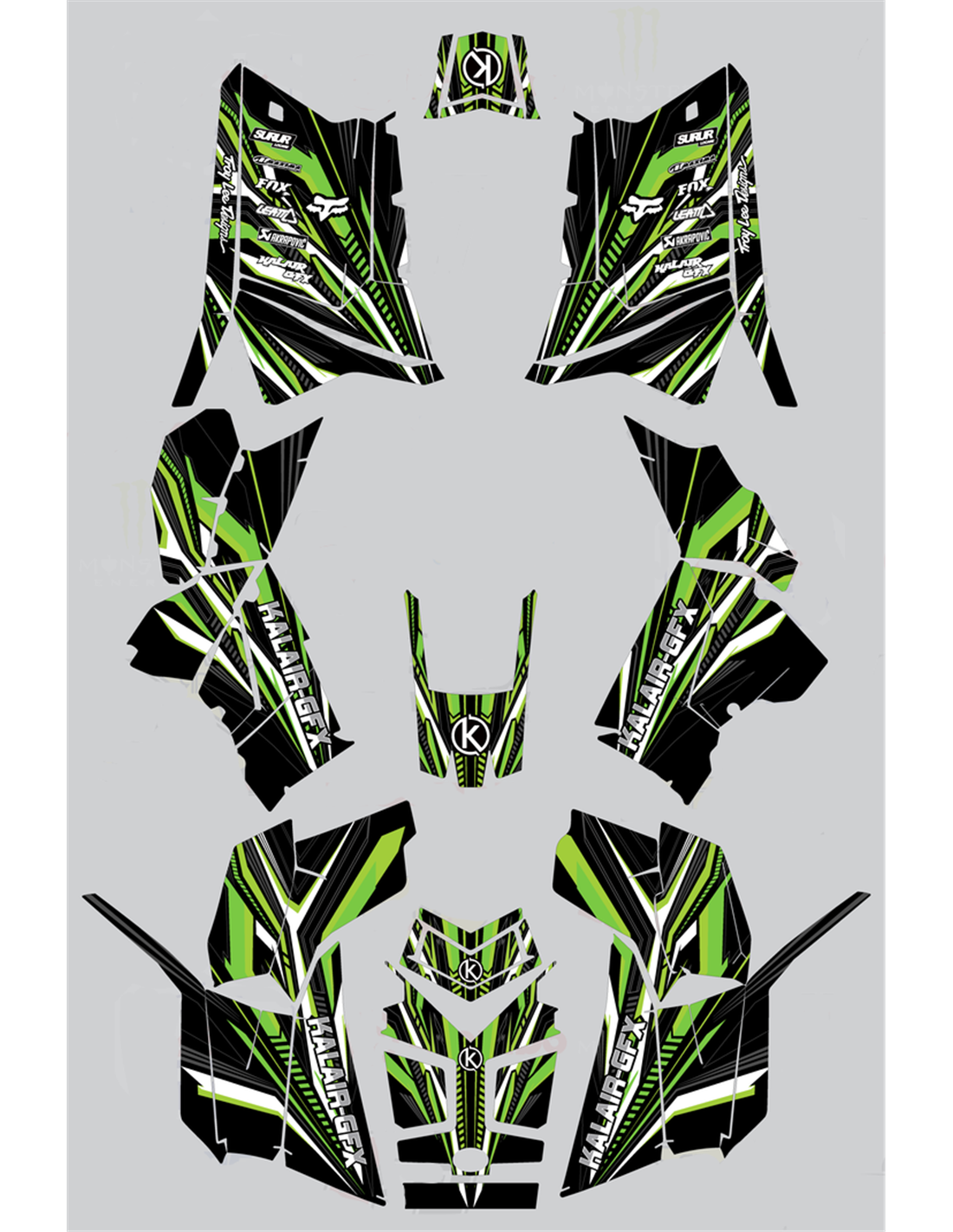 Los adhesivos que producimos están fabricados con materiales crystal de primera calidad que se adaptarán fácil y perfectamente a los plásticos de la motocicleta del cliente. La resistencia del material permite que nuestro gráfico permanezca perfectamente adherido incluso durante las condiciones de uso más difíciles de la motocicleta. La instalación, gracias a los canales de descarga de aire, permite instalar las pegatinas de forma suave y sin burbujas. Utilizamos maquinarias de última generación para la impresión, por lo que podemos imprimir colores brillantes y tonalidades de alta calidad. Incluimos una capa protectora en los adhesivos, para que estén siempre brillantes durante los años y estén protegidas del agua y la suciedad. Es posible personalizar las pegatinas como prefiera. Puede agregar, eliminar o cambiar patrocinadores técnicos, agregar un número de carrera personalizado o su propio nombre. Puede indicar todos los cambios en el campo "Personalización del producto" en el sitio web durante la compra. No nos limitamos solo a los gráficos de nuestro sitio web, puede enviarnos por correo electrónico o WhatsApp una imagen de un diseño que no tenemos, para que podamos hacerle un presupuesto y luego hacerlo. Mediante la compra, se aceptan las condiciones de venta.